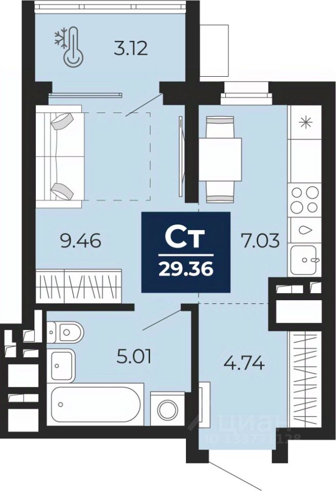 Однокомнатная квартира-студия от застройщика с предчистовой отделкой в ЖК ''Беринг'' на 15 этаже. Общая площадь: 27.8 кв.м., площадь гостиной 16.49 кв.м., из которых 7.03 кв.м. выделено под кухонную зону. Все окна выходят на одну сторону. В квартире один балкон, один совмещенный санузел. Высота потолков 2.72 м.