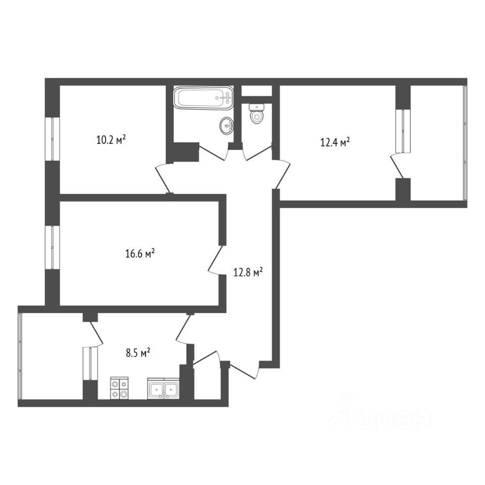 Окна выходят на две стороны, обеспечивая квартиру естественным светом весь день.