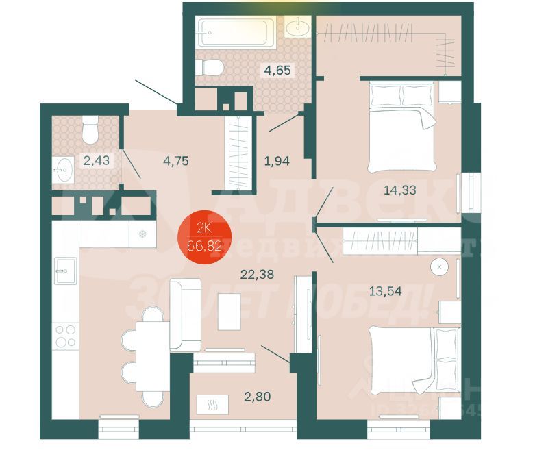 Предлагается к продаже 2-комнатная квартира в новом 24-этажном доме комфорт-класса монолитно-каркасного исполнения, по ул. Одесская. Квартира встретит своих владельцев: продуманной планировкой общей площадью 64,1 кв.м., в которой каждый квадратный метр имеет свою функциональность. просторной кухней-гостиной площадью более 22 кв.м. с четким зонированием пространства на кухонную зону и зону для семейных посиделок и встреч с друзьями. двумя изолированными комнатами правильной формы площадью 13,5 кв. м. и 14,3 кв.м., что обеспечит личное пространство для детей и родителей. Одна из комнат является мастер-спальней и имеет собственную гардеробную. двумя санузлами, площадь которых позволяет разместить необходимое сантехническое оборудование и технику.
