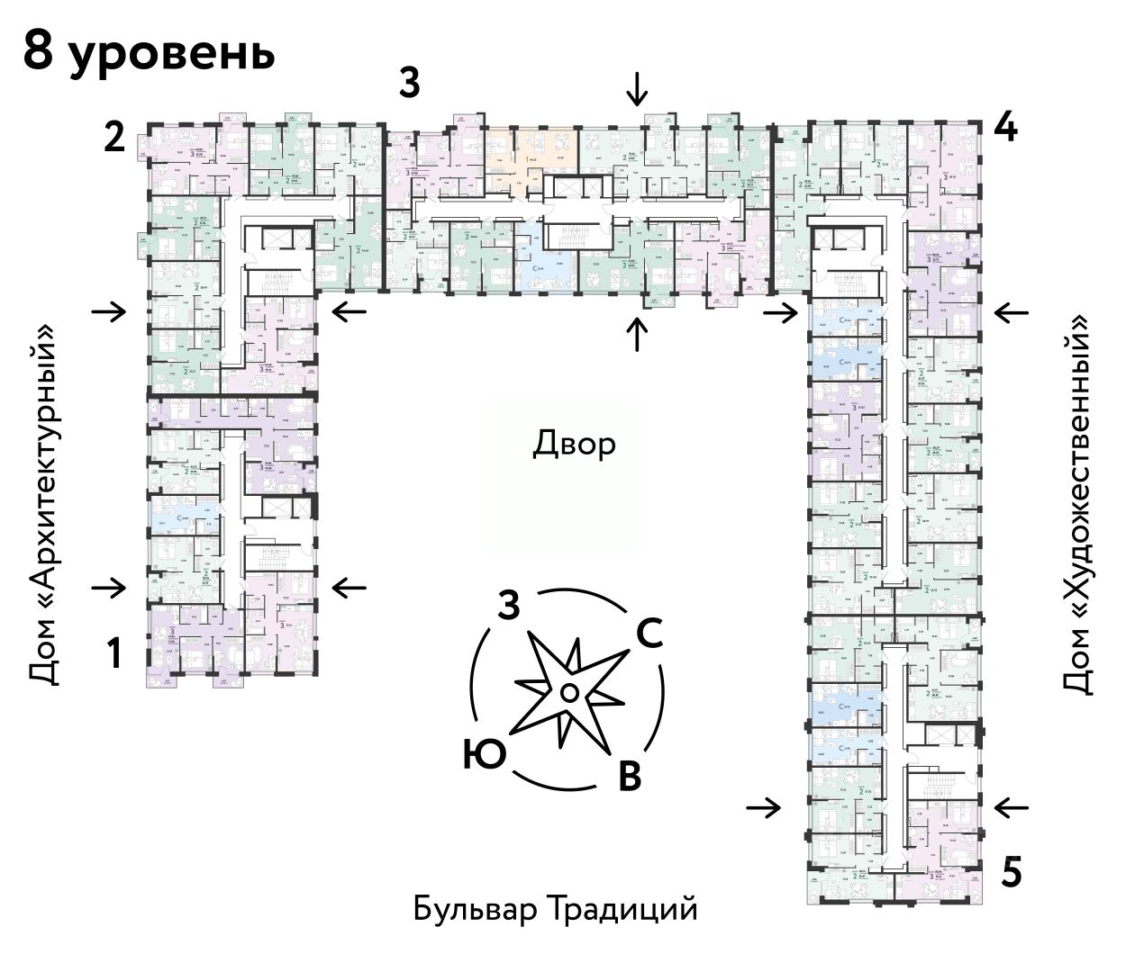 ПРЕИМУЩЕСТВА -Школа, зеленый сквер и пешеходный бульвар прямо внутри квартала -Закрытые дворы у каждого дома для активного и спокойного отдыха -Охрана, видеонаблюдение 24/7 и доступ к камерам в мобильном приложении -Сквозные парадные с прозрачными входными группами, колясочными и велосипедными -Паркинг с въездом по считыванию номеров, системой контроля выбросов CO2, тележками для покупок и велопарковкой -Торговая галерея на первом этаже дома