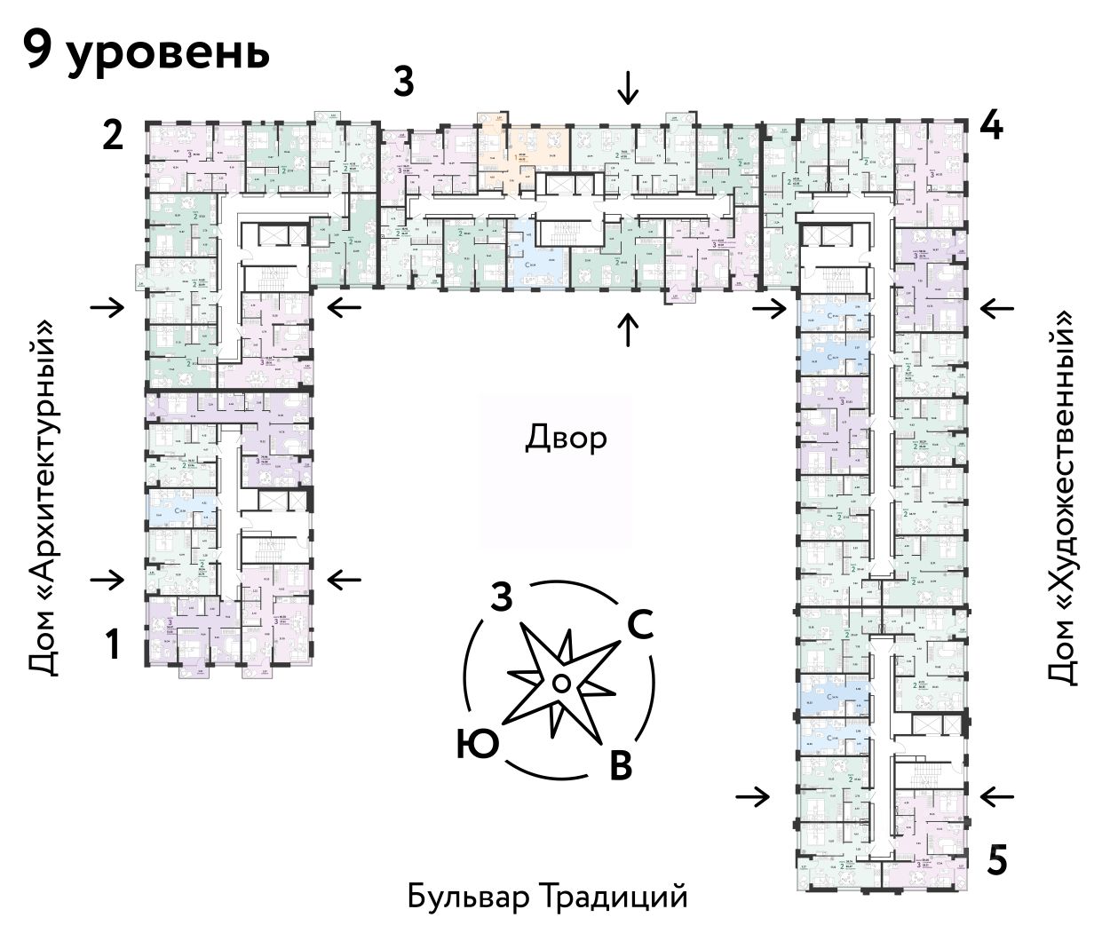 ПРЕИМУЩЕСТВА -Школа, зеленый сквер и пешеходный бульвар прямо внутри квартала -Закрытые дворы у каждого дома для активного и спокойного отдыха -Охрана, видеонаблюдение 24/7 и доступ к камерам в мобильном приложении -Сквозные парадные с прозрачными входными группами, колясочными и велосипедными -Паркинг с въездом по считыванию номеров, системой контроля выбросов CO2, тележками для покупок и велопарковкой -Торговая галерея на первом этаже дома
