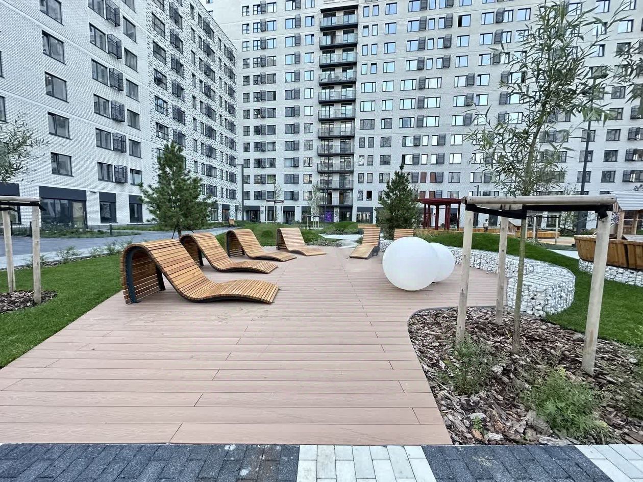 Внутренняя территория ЖК благоустроена по принципу двор без машин, с красивой придомовой территорией и включает разнообразные зоны для отдыха, работы и спорта. Продуманное пространство способствует активному образу жизни — здесь созданы условия для утренних пробежек, вечерних прогулок, занятий на свежем воздухе и общения с соседями.