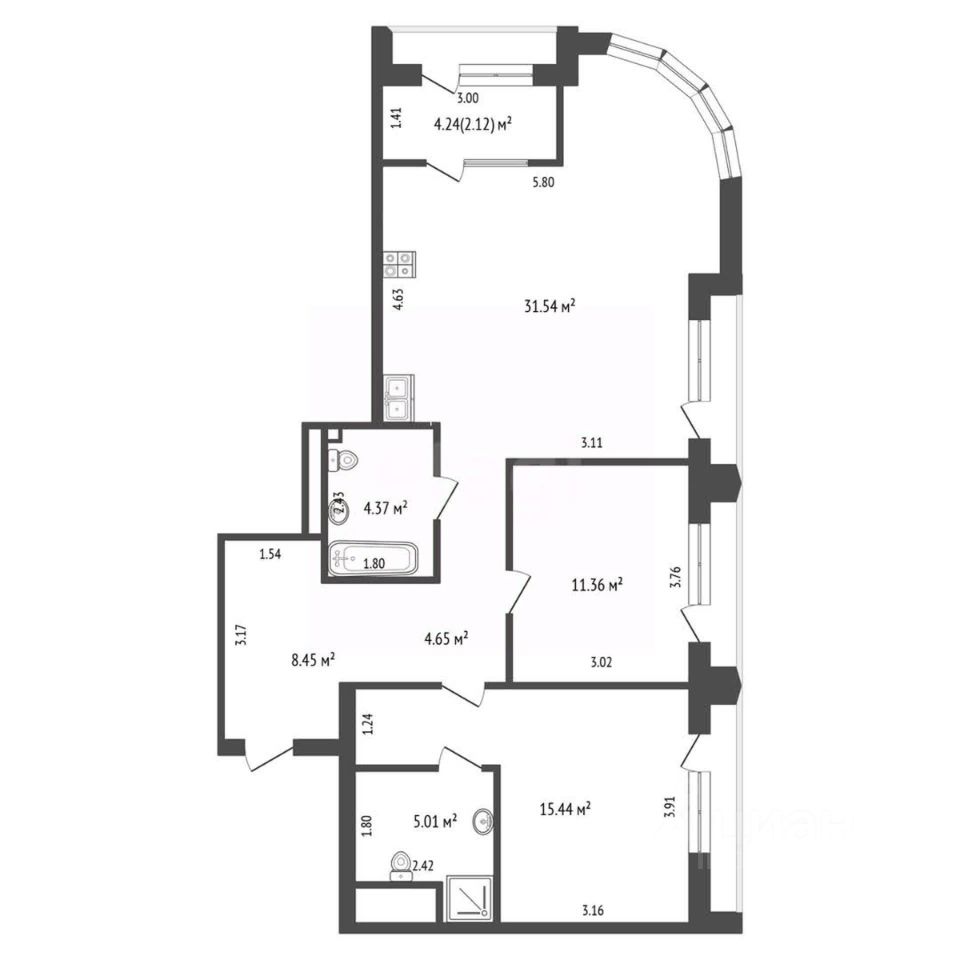 Общая площадь квартиры составляет 86 м², что обеспечивает комфорт и свободу для жизни. Всего 4 квартиры на площадке гарантируют тишину и спокойствие. Высота потолков в 3,10 м создает ощущение простора и света.