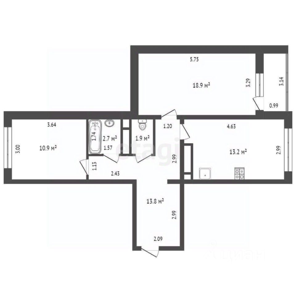 Удобная планировка: Квартира-распашонка на две стороны света обеспечивает отличную вентиляцию и естественное освещение.