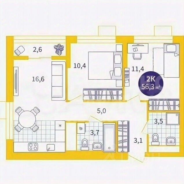 Квартира находится в активно развивающемся районе, дом сдан в 2024 году. Вас ждет улучшенная черновая отделка, позволяющая воплотить любые дизайнерские решения. Планировка включает две изолированные комнаты, просторную кухню-гостиную с теплой лоджией и два санузла по 3.5 кв.м. каждый. Большие окна наполняют квартиру светом и открывают захватывающие виды: с одной стороны на живописную реку Тура, с другой на знаменитый мост Влюбленных, откуда будут прекрасно видны все праздничные фейерверки.
