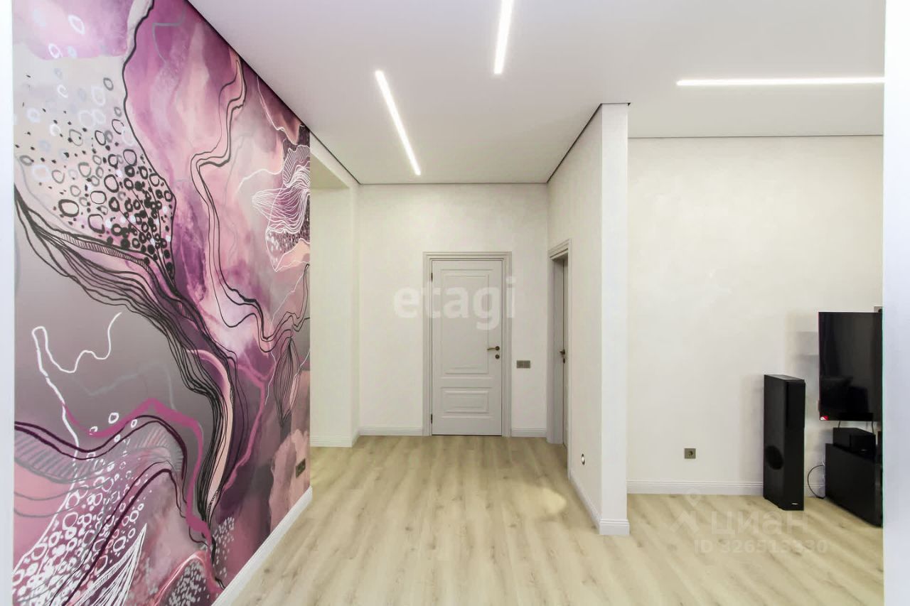 В квартире выполнен дизайнерский ремонт из качественных материалов, в светлых тонах. На стенах декоративная штукатурка, фрески. Парящий потолок премиум качества. керамогранит в ванной и санузле italon. Качественная сантехника. Двери Волховец . В квартире остается вся мебель и встроенная кухня Лорена с техникой.