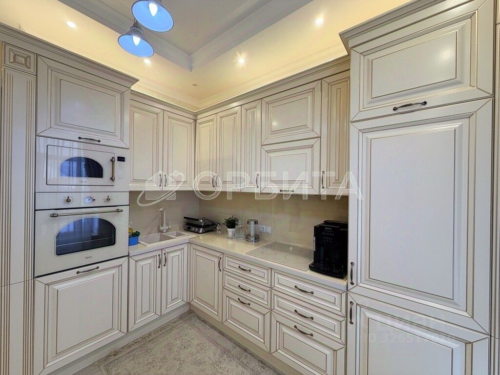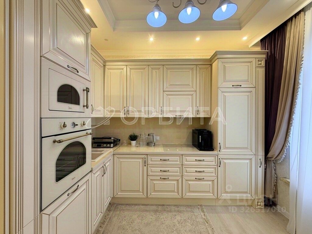 Большая кухня-гостиная с качественным классическим гарнитуром и техникой.
