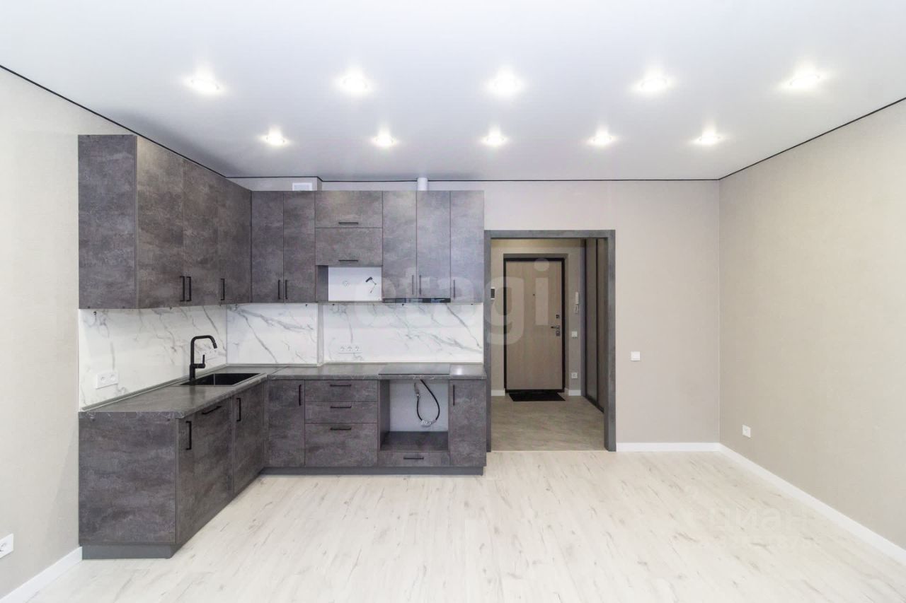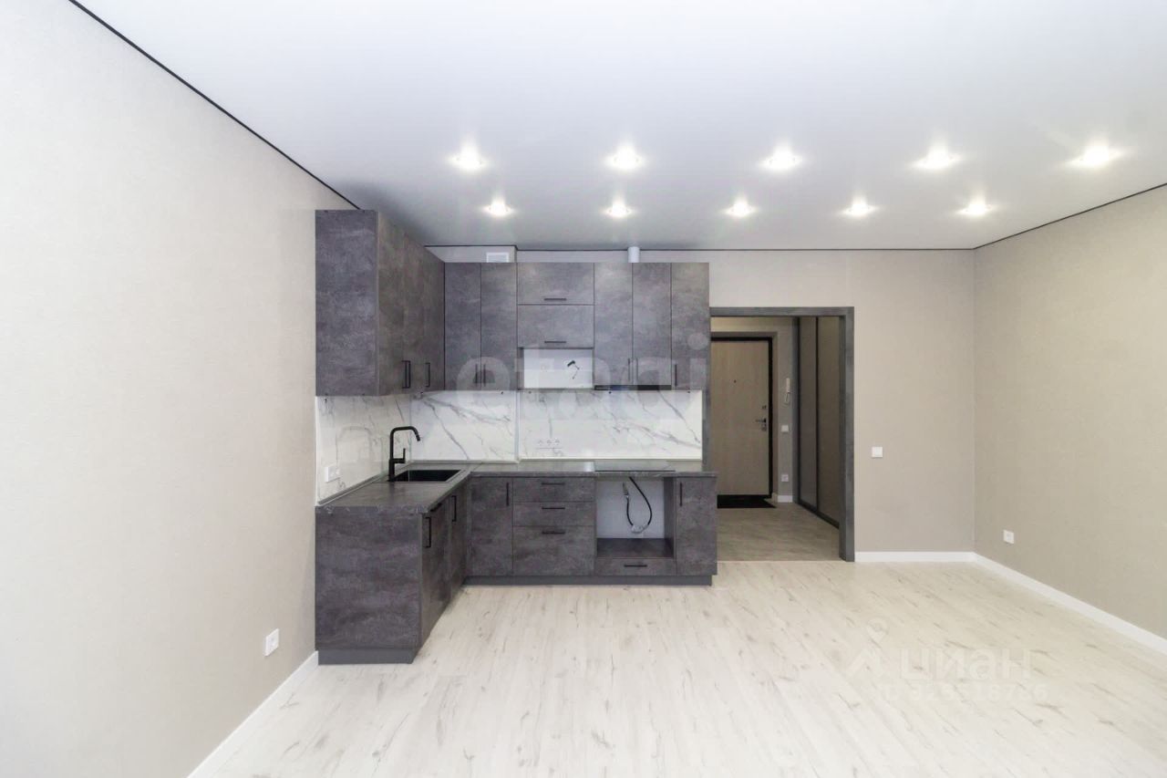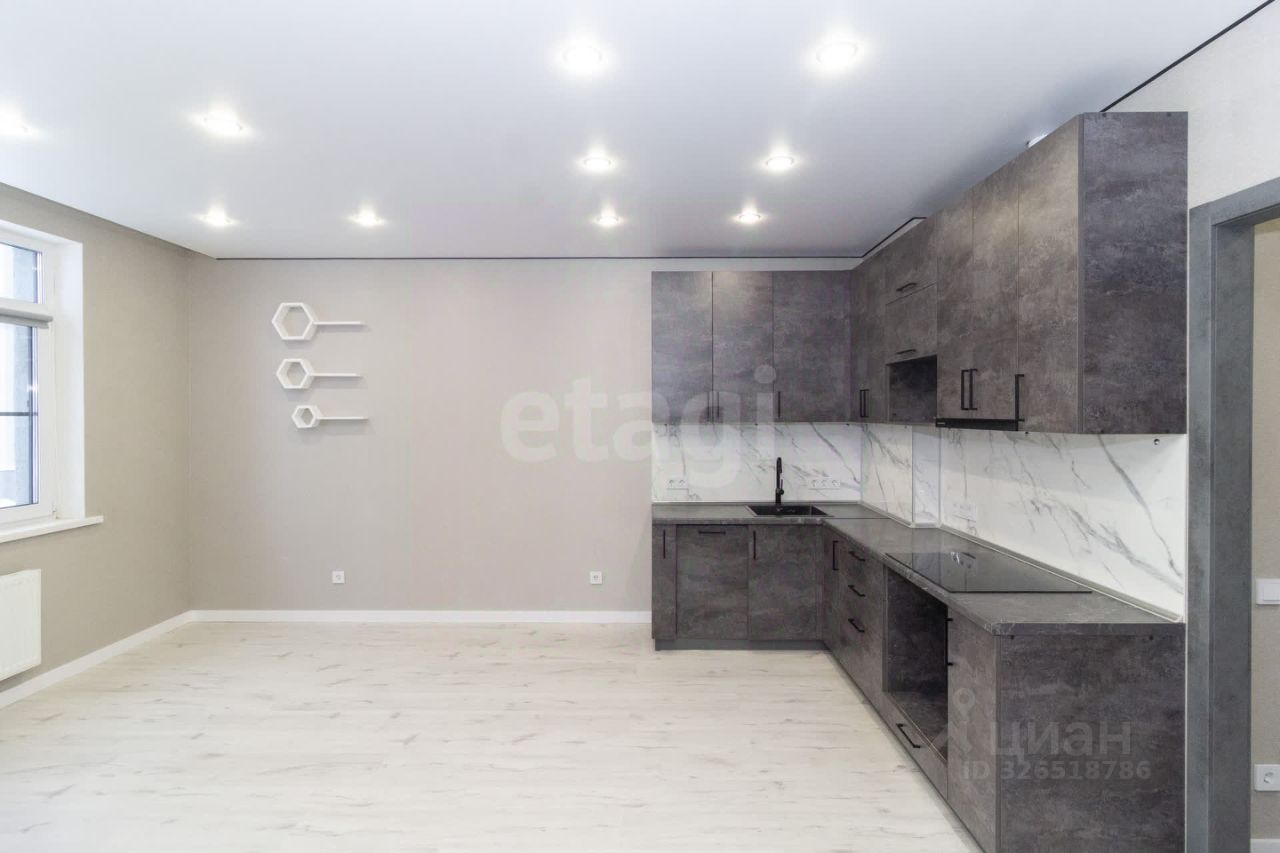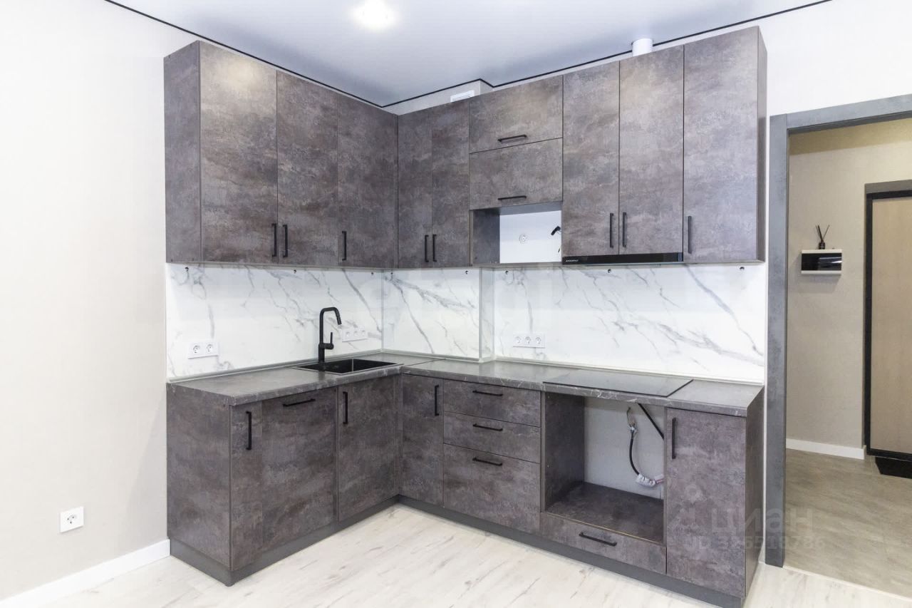 - Стены оклеены качественными обоями. - На полу уложен ламинат. - Кухонный гарнитур оборудован современной варочной панелью и встроенной вытяжкой.