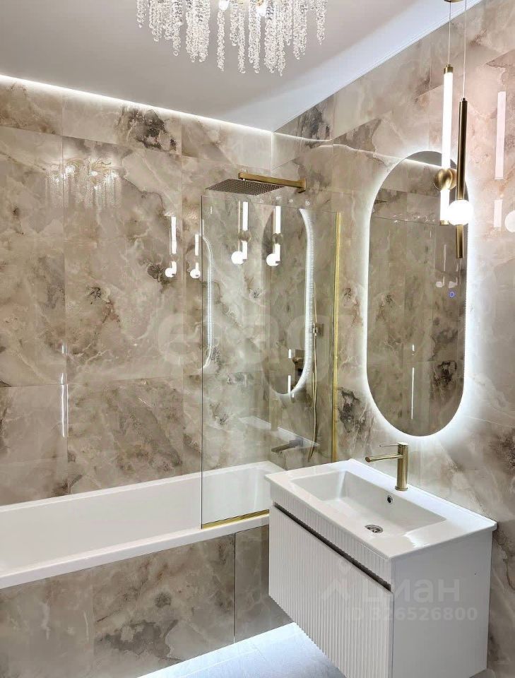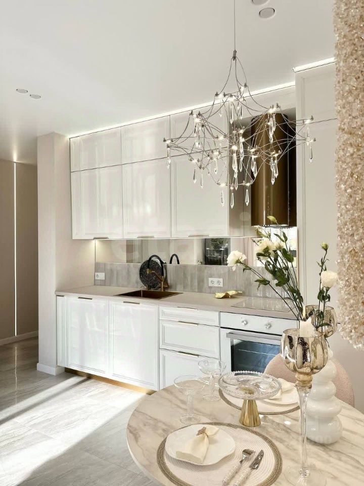 Ремонт сделан в оттенках стильный беж/тауп . Также продуман технический дизайн , установлены датчики протечки , освещение и техника включается по голосу и в приложении .