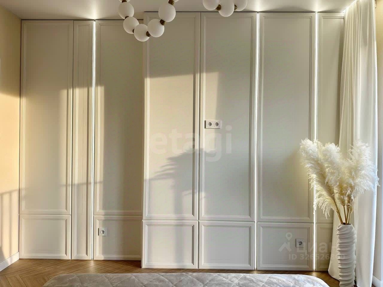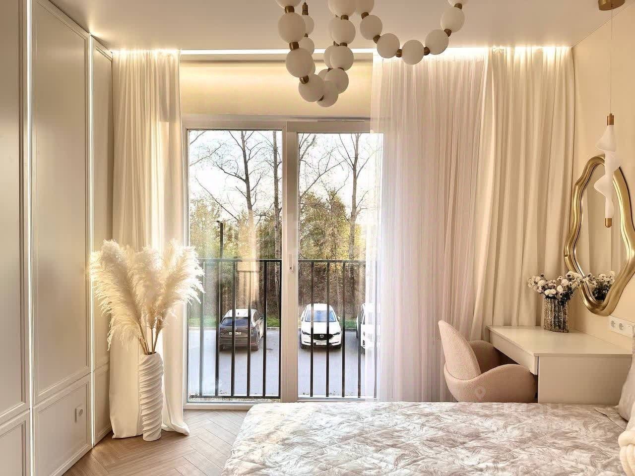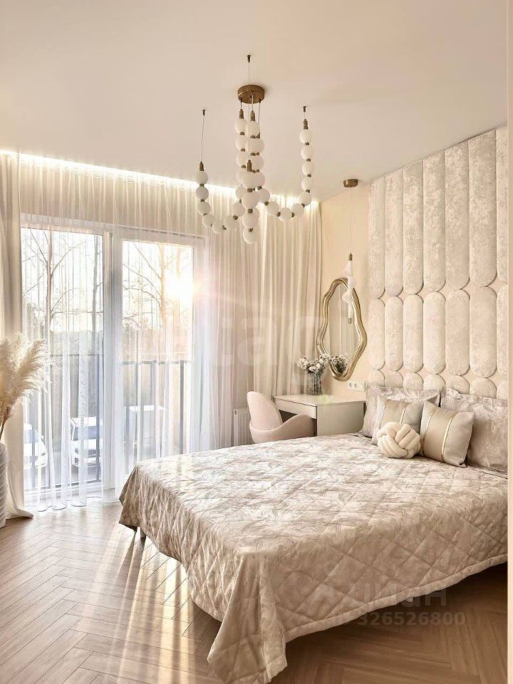 В квартире просторная кухня-гостиная с французским балконом. Большая отдельная гардеробная, спальня и совмещенный санузел .