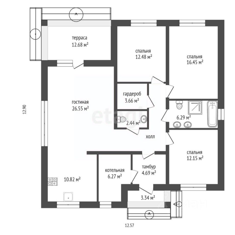 Продается стильный дом площадью 110.6 кв.м (126.6 кв.м - с учетом террасы). Выполнен из дорогих и высококачественных материалов. Подходит под СЕМЕЙНУЮ и IT-ипотеки.Ипотека ВТБ под 3,5 % в течении года,далее по семейной или стандарту. Возможна Рассрочка ( ПВ-50%) Дом расположен в п. Новокаменский по Ирбитскому тракту на расстоянии 29 км от центра. Удачное расположение - участок угловой. Жилой дом с тремя спальнями, кухней-гостиной, гардеробной, двумя сан. узлами, собственной котельной и террасой. В доме стены оштукатурены, установлены окна с тройным остекленением ( 76 профиль) и ламинацией с улицы, каменные подоконники, приточная вентиляция под окнами. Разведены водопровод, канализация и отопление, теплые полы и дополнительно радиаторы в спальнях, выведены контроллеры на каждую комнату. В доме установлена системв Умный дом: разведено электирчество (зональное) и управление светом и теплом с помощью голосового управления (Алиса) или с телефона через интернет. Дверь с терморазвывом. Утепление кровли 250 мм. Наружные стены из газоблока 400 (300+100) мм+облицовка кирпичом. Внутренние стены - силикатный блок. В гостинной сделан второй свет. Оштукатурены стены под маяк и готова стяжка пола, установлены инсталяции и трапик под душ. Установлены фильты грубой очистки, автоматика. Бойлер косвенного нагрева, электрический котел. Установлена аэроционная станция, септик Кристалл 5 с дренажным колодцем, скважина 48 м с кессоном. Электричество заведено в дом 15кВт. Снаружи сделали отмостку и выложили брусчатку. Газоснабжение осуществляется по улице рядом со столбом для подключения электричества. ДОМ ГОТОВ. ХОДИТ ШКОЛЬНЫЙ АВТОБУС. При желании можно удвоить площадь участка. В продаже смежный участок за 1,5 млн. рублей. Рассмотрим вариант ТРЕЙД-ИНА на однакомнатную квартиру новом доме с доплатой.