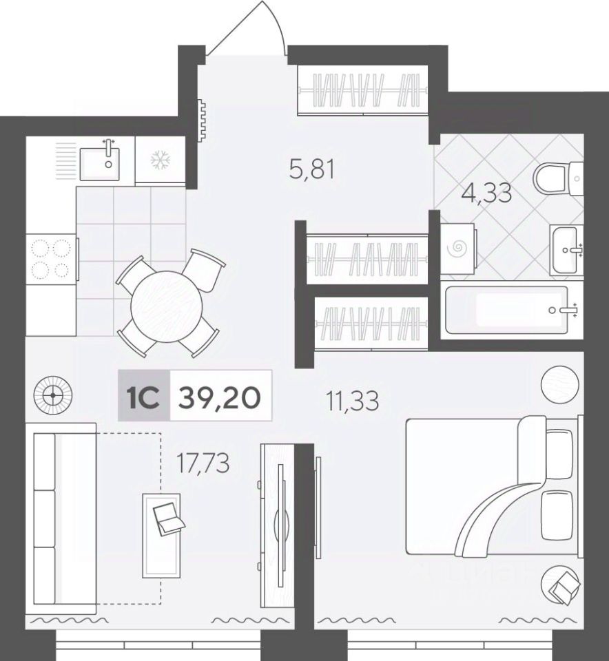 Продаётся 1-комнатная квартира в строящемся доме (ГП 2 (Сергея Корепанова, 34)), срок сдачи: IV-кв. 2027, общей площадью 39.2 кв.м., на 3 этаже. Новый жилой комплекс ''Скандиа. Квартал у Леса'' от Специализированного застройщика ''СКАНДИА У ЛЕСА'' расположен в г. Тюмень на ул. Бориса Прудаева.