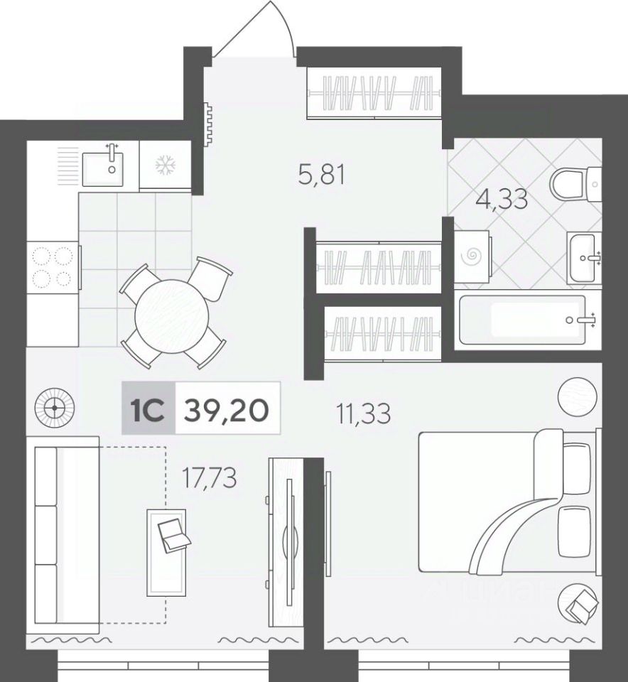 Продаётся 1-комнатная квартира в строящемся доме (ГП 2 (Сергея Корепанова, 34)), срок сдачи: IV-кв. 2027, общей площадью 39.2 кв.м., на 11 этаже. Новый жилой комплекс ''Скандиа. Квартал у Леса'' от Специализированного застройщика ''СКАНДИА У ЛЕСА'' расположен в г. Тюмень на ул. Бориса Прудаева.