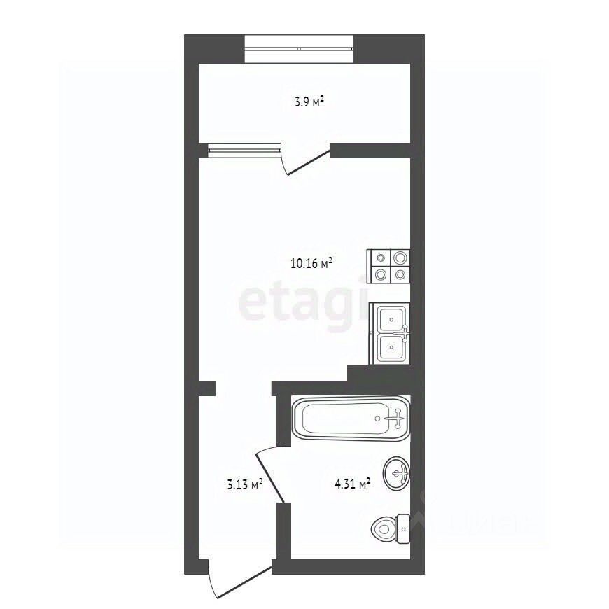 В планировку квартиры входит большая комната с теплой лоджией, совмещенный санузел, прихожая зона.