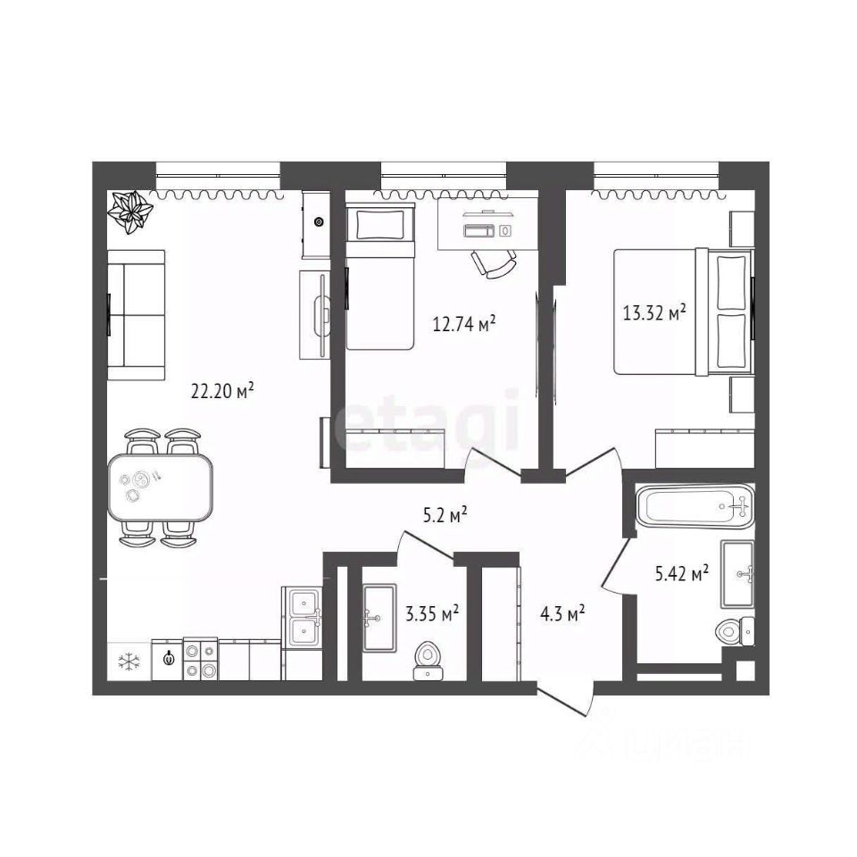 Уважаемые покупатели! Продается двухкомнатная квартира (2+) Общая площадь квартиры составляет 69м2. Площадь комнат: Кухня-гостиная 23,53 м2. Просторная спальня 12 м2. Детская 13. 2 сан узла. Квартира имеет функционал *умный дом*: датчик протечки воды, вход в подъезд по face id, вкл/выкл. света, розеток с телефона, все заведено в щиток квартиры. Жилой комплекс ''Сердце Сибири'' расположился в центре Тюмени в границах улиц 50 лет Октября-Пермякова-Харьковская. Проект включает 8 домов переменной этажности с многоуровневым паркингом, большой бульвар для пеших прогулок и детсад. Авторская архитектура — теплый фасад и клинкерный кирпич разной формы выгодно сочетается с большими окнами и витражным остеклением.