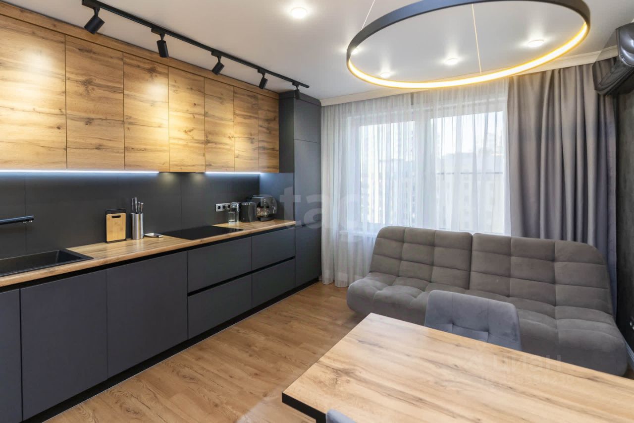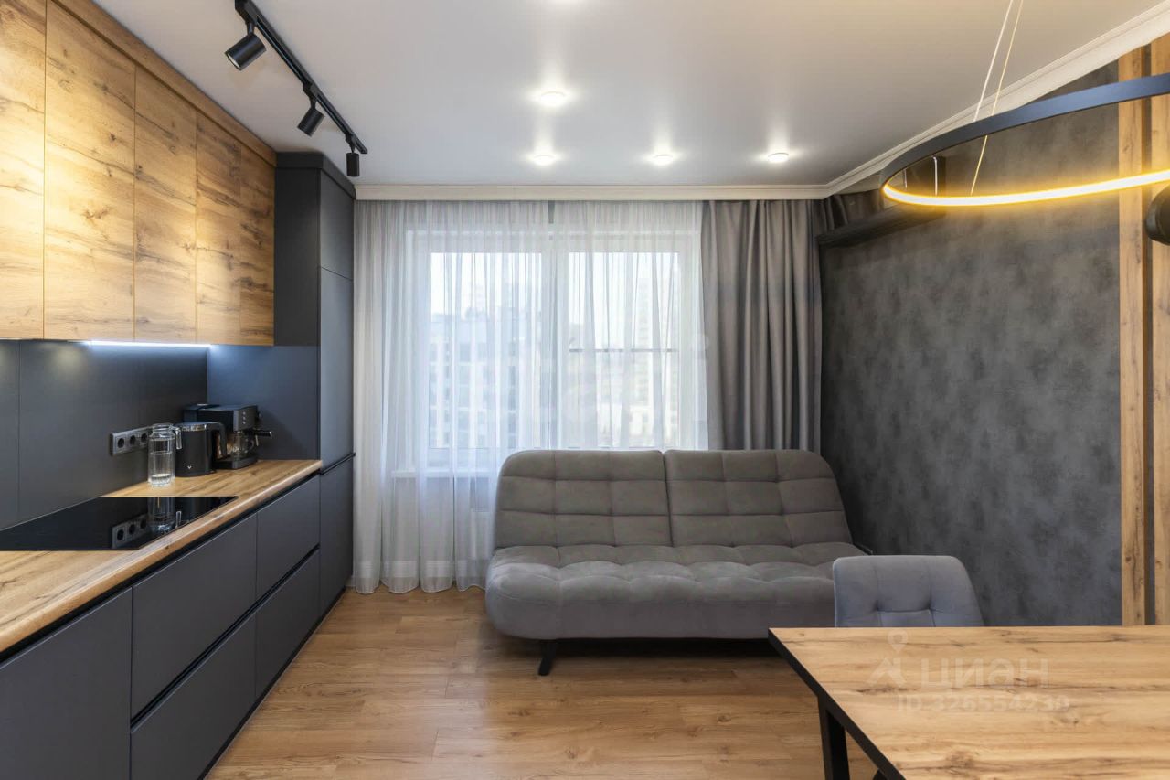 - Дизайнерский ремонт высочайшего уровня: стилистически выдержанный интерьер, идеально подобранные цвета и сочетания материалов. - Встроенная кухня премиум-класса с бытовой техникой . - Современная мебель высокого качества с фурнитурой Blum, обеспечивающая долговечность и удобство эксплуатации. - Просторная спальня оборудована эргономичным большим встроенным шкафом.