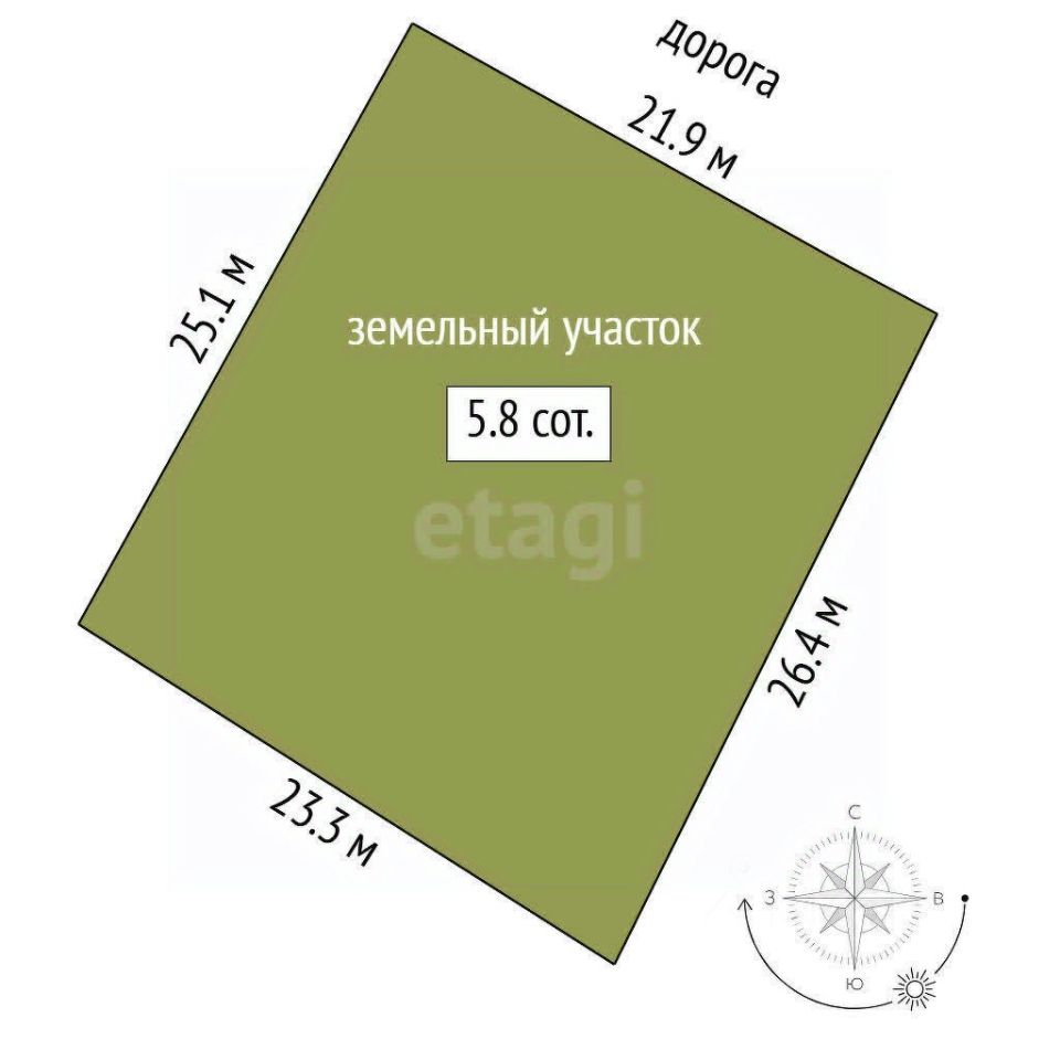 Земельный участок 5,8 сотки огорожен со всех сторон, заезд на территорию.