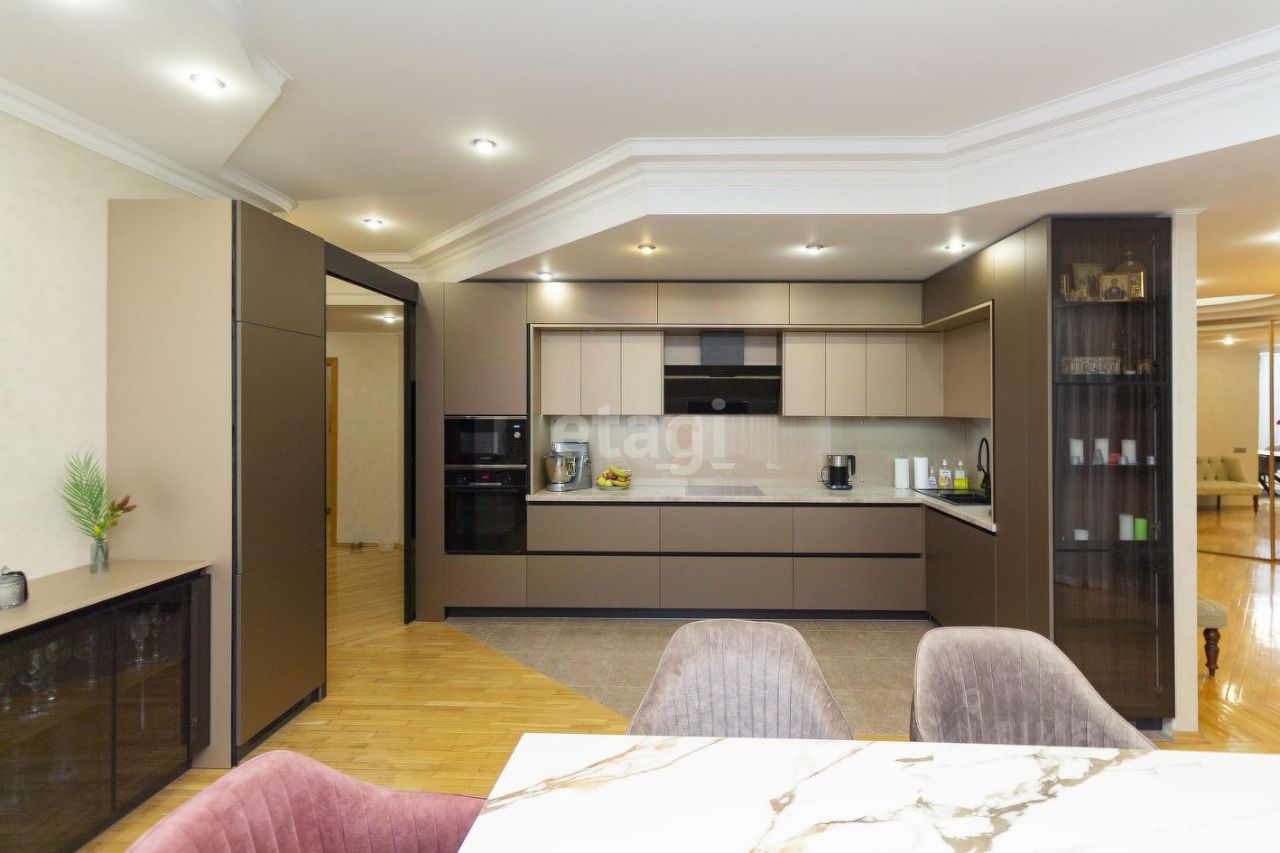 Красивая и уютная квартира в самом центре города вдали от шума центральных дорог в окружении зелени и тишины. Квартира в кирпичном исполнении. Любителям комфортного проживания и простора предлагается к продаже 4-к квартира (183,9 м²) на 5 этаже 10-этажного кирпичного дома, индивидуальный проект, на площадке две квартиры. Закрытый, охраняемый двор. Отличная планировка позволяет ощутить гармоничное расположение всех комнат и помещений : гостиная-столовая, 3 спальни, 3 санузла и отдельно прачечная. Классический ремонт: потолок многоуровневый с точечной подсветкой, на полу штучный дубовый паркет , двери межкомнатные из дубового массива, в санузлах итальянский кафель. Большинство окон в квартире выходит на солнечную сторону. Четыре лоджии застеклены. В квартире при продаже остаются кондиционер, встроенные шкафы-купе, кухонный гарнитур. А также вся мебель и сантехника в санузлах. На площадке всего две квартиры, соседи доброжелательные. Дом расположен в центре города, в шаговой доступности школа и детские сады, множество торговых и развлекательных центров, магазинов, спортивных комплексов, косметических салонов Рассмотрим все Ваши предложения. Придомовая закрытая территория , охрана 24/7, видеонаблюдение, ежедневная влажная уборка подъездов.