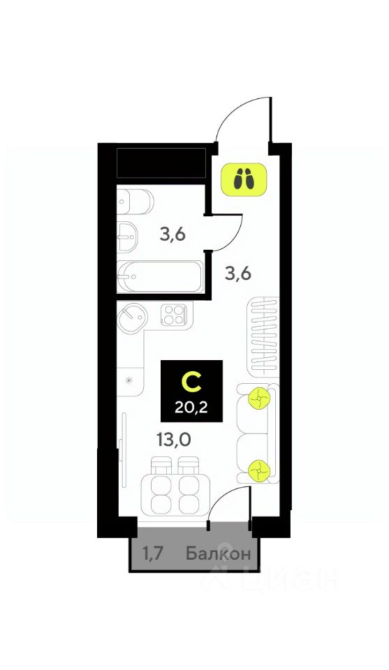 Общая площадь20,2 м2