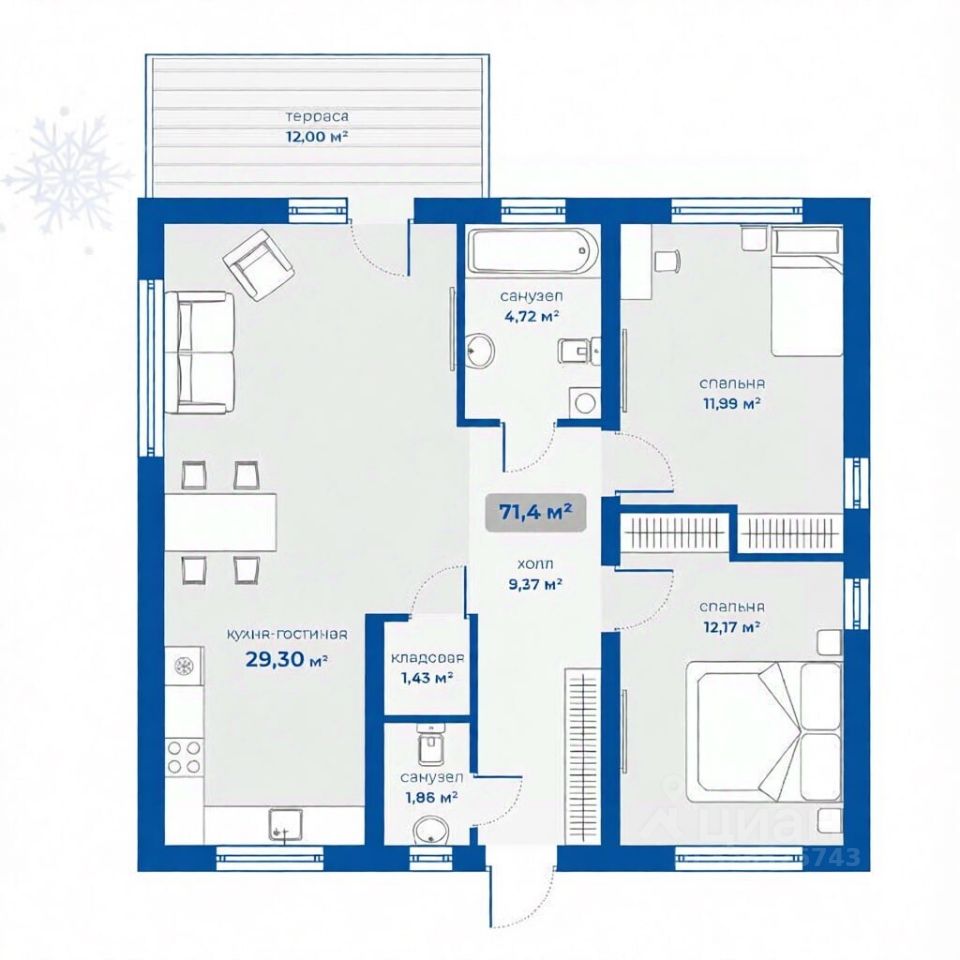 Общая площадь73 м2