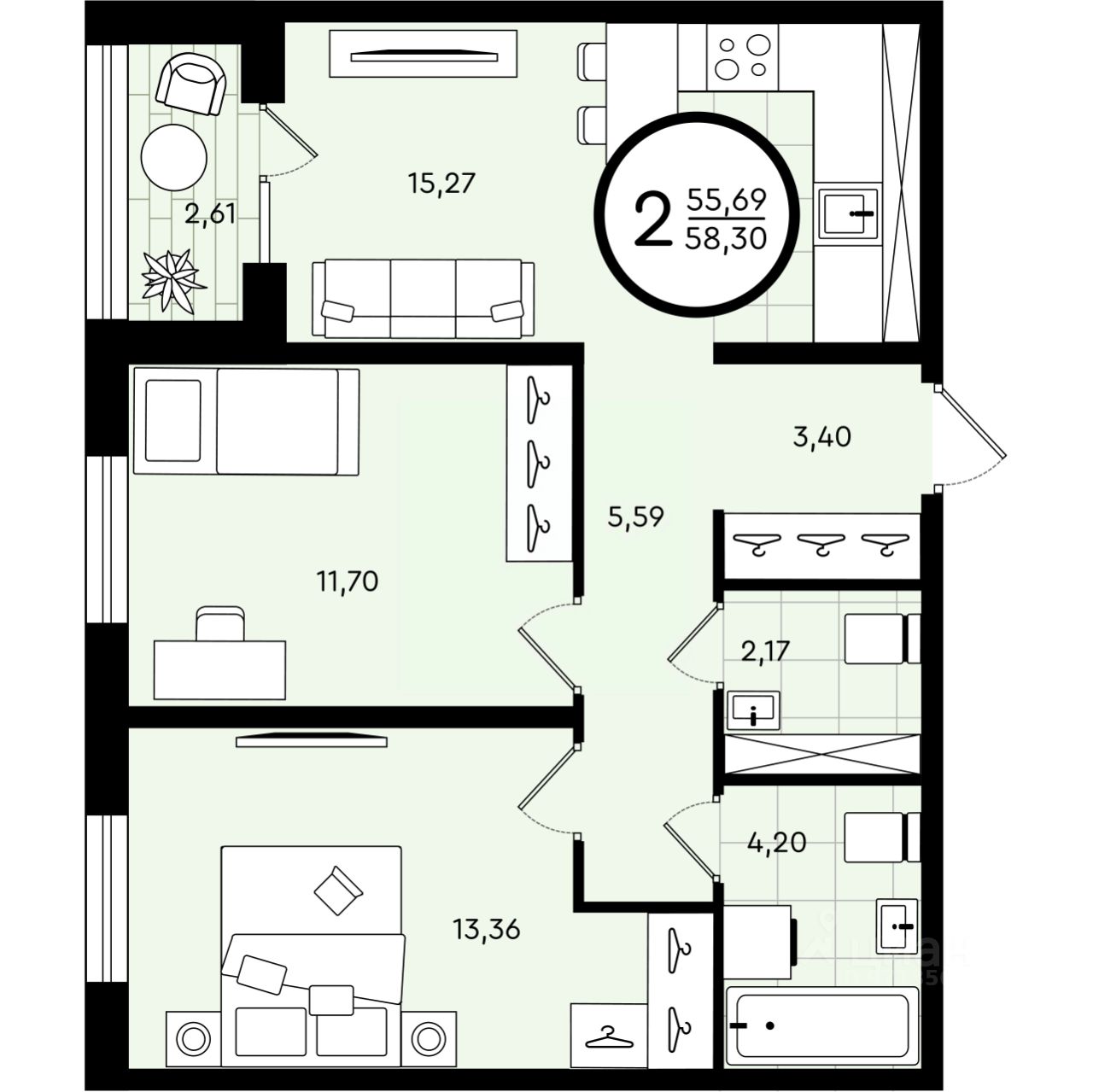 продам 2-к, Александра Звягина, 57 601 400 ₽
