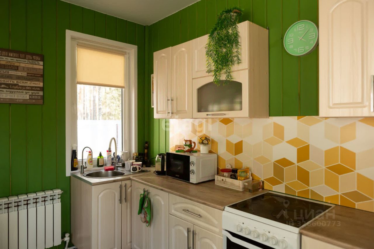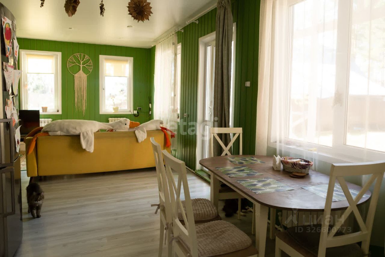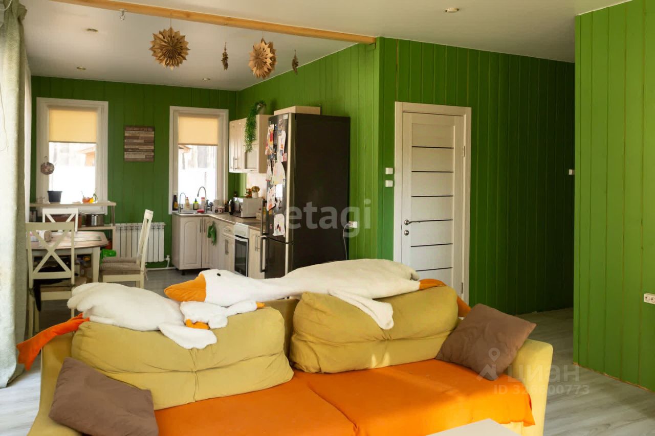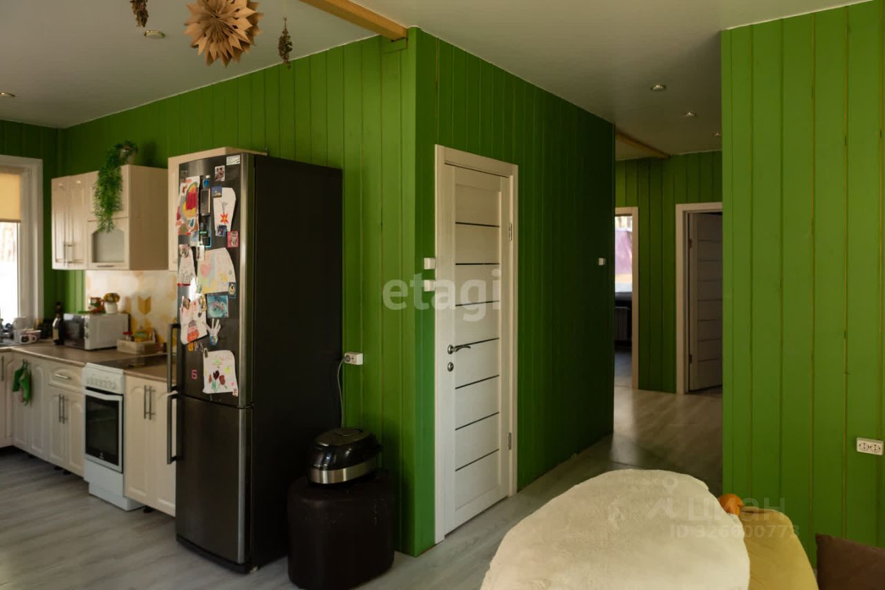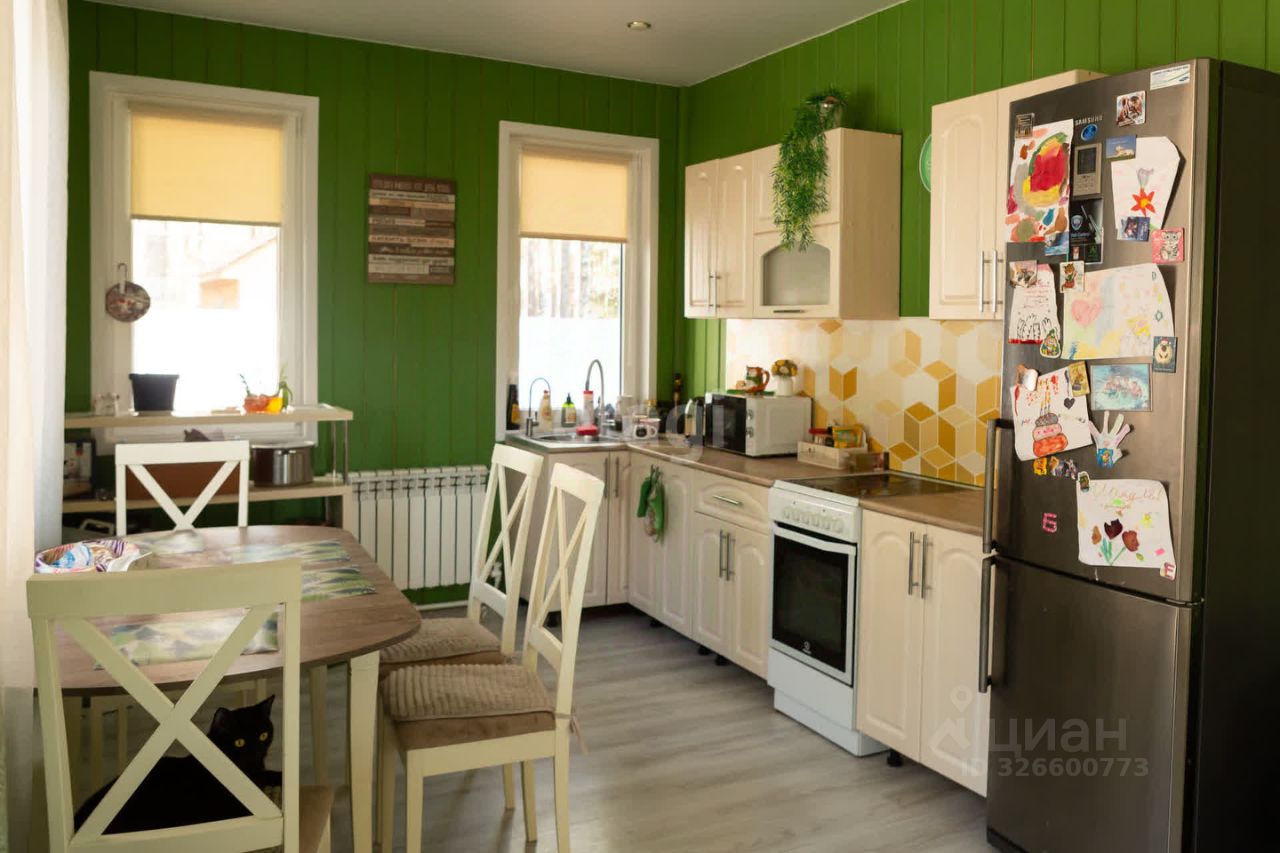 В поселке есть школа, садик, врачебная амбулатория, дом культуры. Все это в 15 минутах ходьбы. Магазины Пятёрочка, Магнит, аптека, строительные магазины, пункты выдачи Оzоn и Wildbеrriеs. Дом каркасный. Расположен в лесу, практически на окраине села. В доме три комнаты, большая кухня-гостинная, два санузла (один совмещён с душевой), хозяйственная комната с эл.котлом.