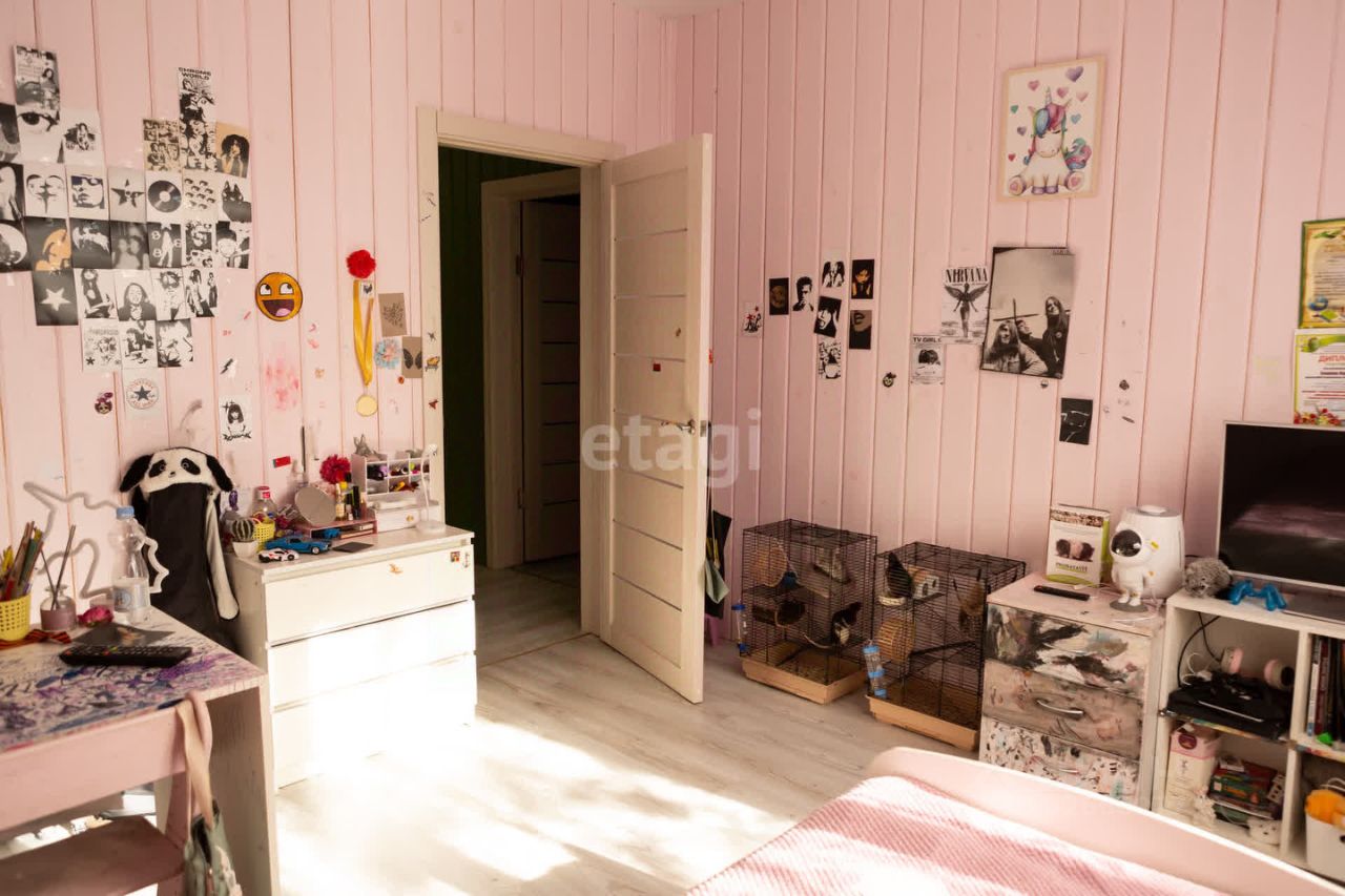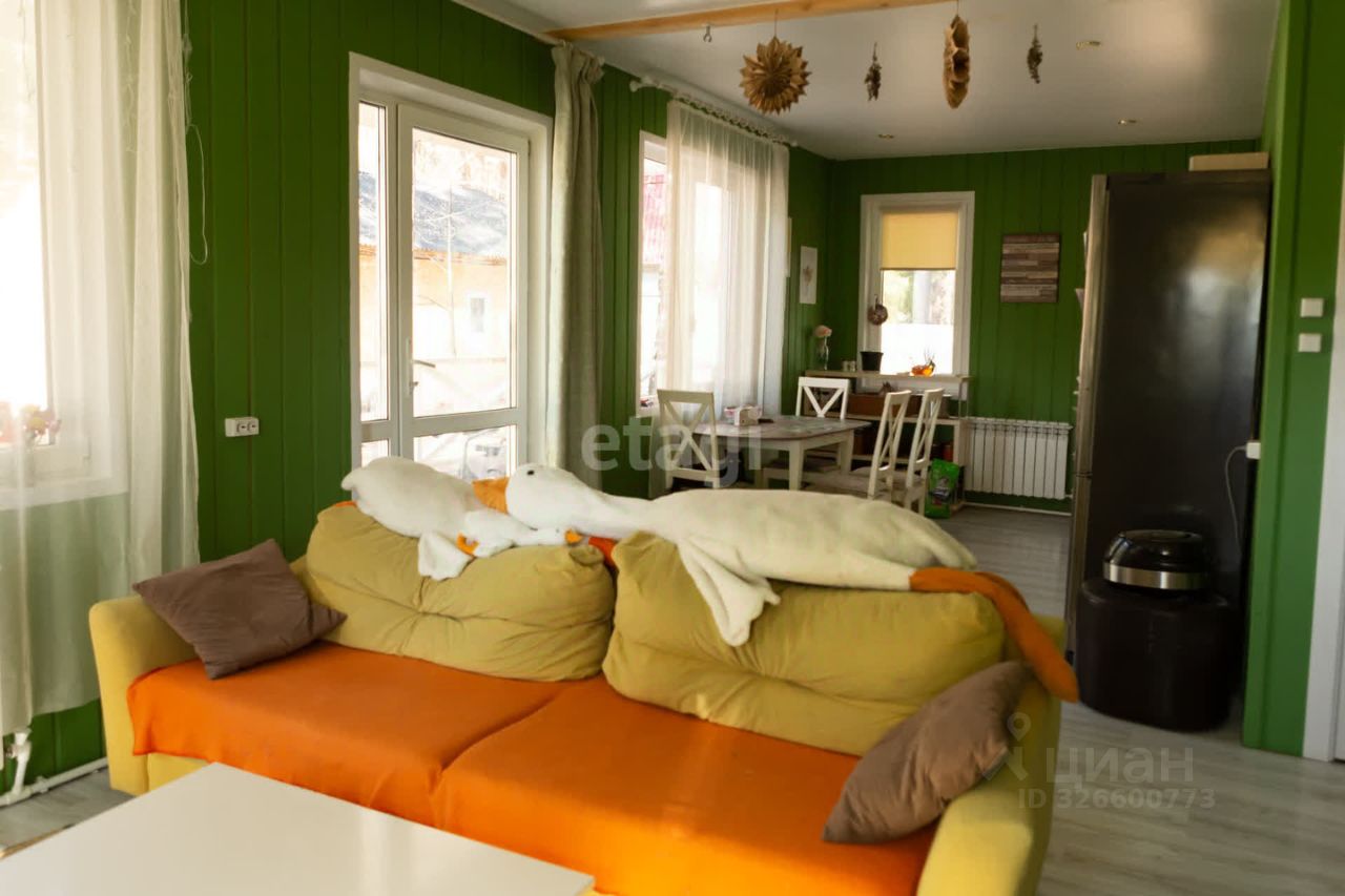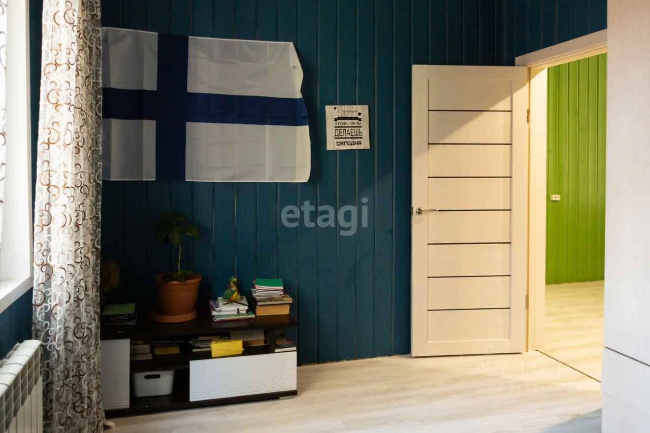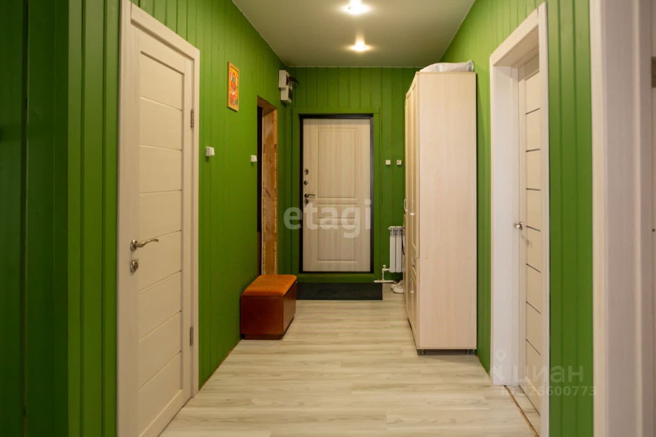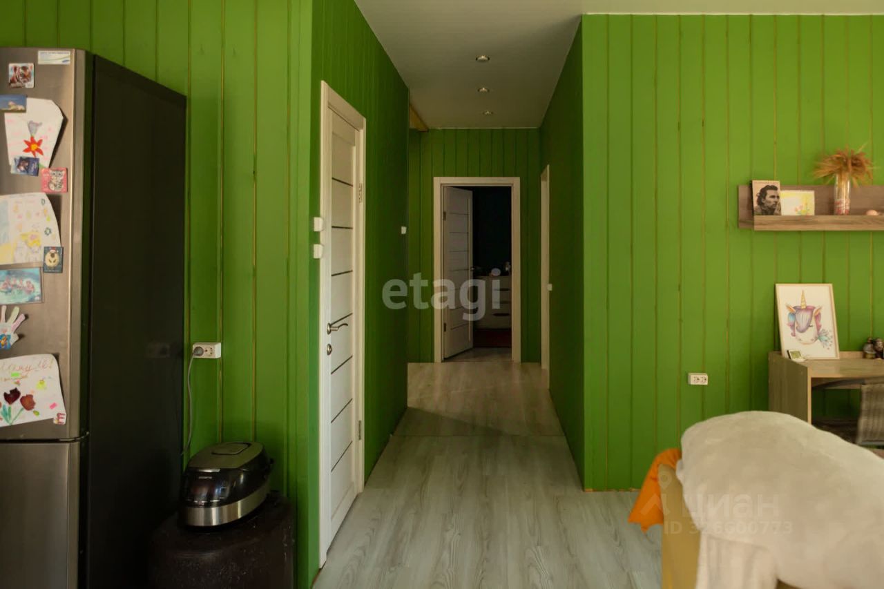 В поселке есть школа, садик, врачебная амбулатория, дом культуры. Все это в 15 минутах ходьбы. Магазины Пятёрочка, Магнит, аптека, строительные магазины, пункты выдачи Оzоn и Wildbеrriеs. Дом каркасный. Расположен в лесу, практически на окраине села. В доме три комнаты, большая кухня-гостинная, два санузла (один совмещён с душевой), хозяйственная комната с эл.котлом.