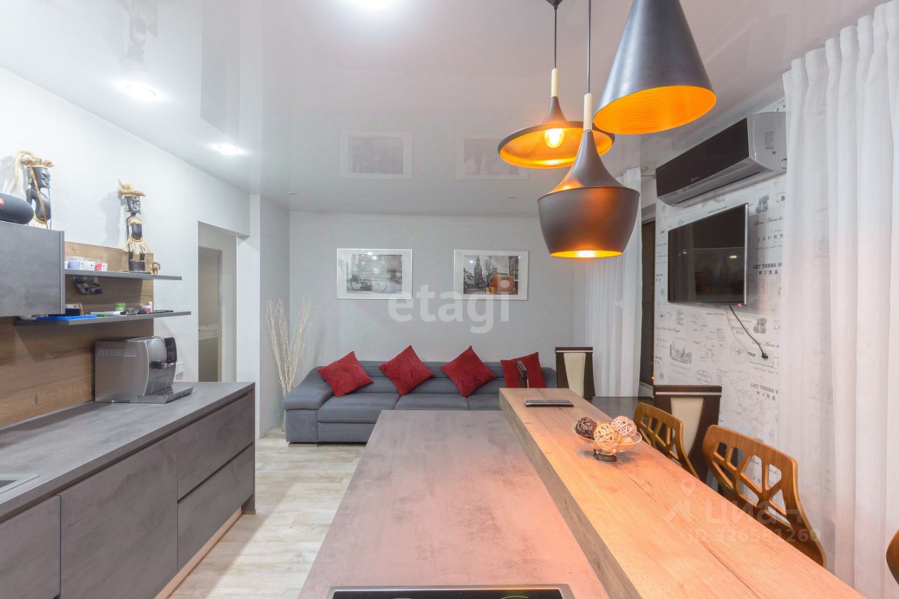 Современная квартира формата ''2 плюс'' в популярном ЖК ''Видный''. Ремонт по продуманному дизайн-проекту с использованием качественных материалов восхитит ценителей стиля и уюта. Площадь 80,4 кв. м., много света и эргономично использованного пространства. Большая кухня-гостиная 22,8 кв.м. с современной бытовой техникой. Кухонный остров, фартук и столешница в рабочей зоне сделаны под заказ. Кухню-гостиную можно использовать как два условных помещения: в одном вы посвящаете время гастрономическим экспериментам, в другом - проводите время за беседами, расположившись в обеденной зоне. Кондиционер установлен на стене, где расположен телевизор. На полу ламинат. В целом цветовая гамма интерьера не перегружена цветовыми акцентами - всё гармонично и выдержанно. В комнате площадью 20,3 кв.м.