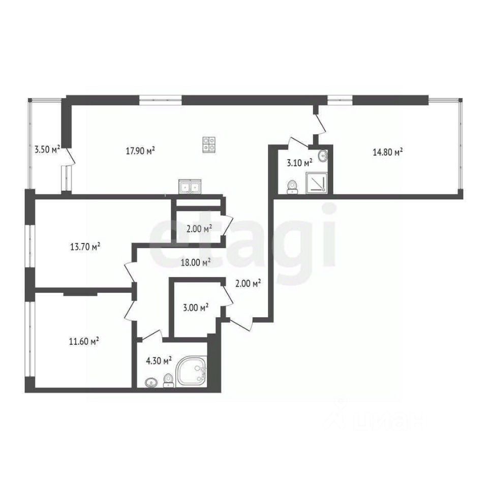 Отличная продуманная планировка, большая кухня-гостиная площадью почти 20 кв.м, где отлично выполнено зонирование пространства, нет ощущения перегруженности и тесноты - каждая вещь на своем месте. Приобретая эту квартиру вы покупаете не просто квадратные метры, вы покупаете комфорт на весь период проживания в ней.