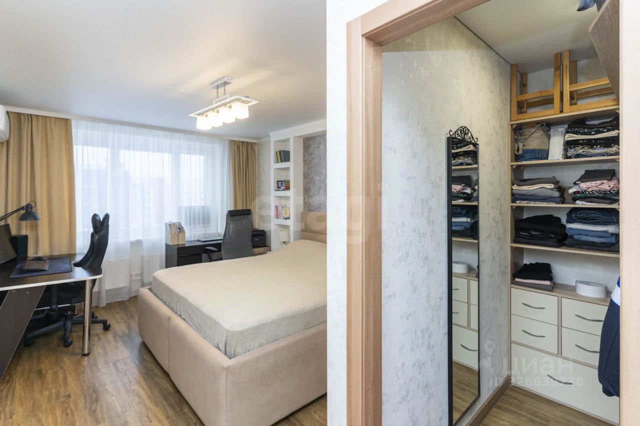 Для удобства новых владельцев в квартире остается вместительный шкаф в прихожей, кухонный гарнитур, техника в кухне и ванной комнате, шторы, люстры, светильники, кондиционер в комнате (кроме холодильника, стиральной машины). В комнате также оборудован отдельный гардероб дополнительное место под хранение.