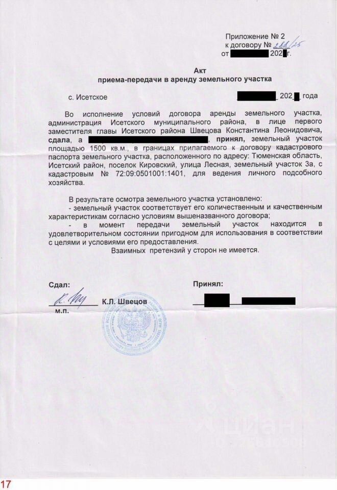 Участок 15 соток (29,35 * 51,11 = 1500 м²), Лпх приусадебный — Земли населенных пунктов, отлично подходящий для постоянного проживания или дачного дома.