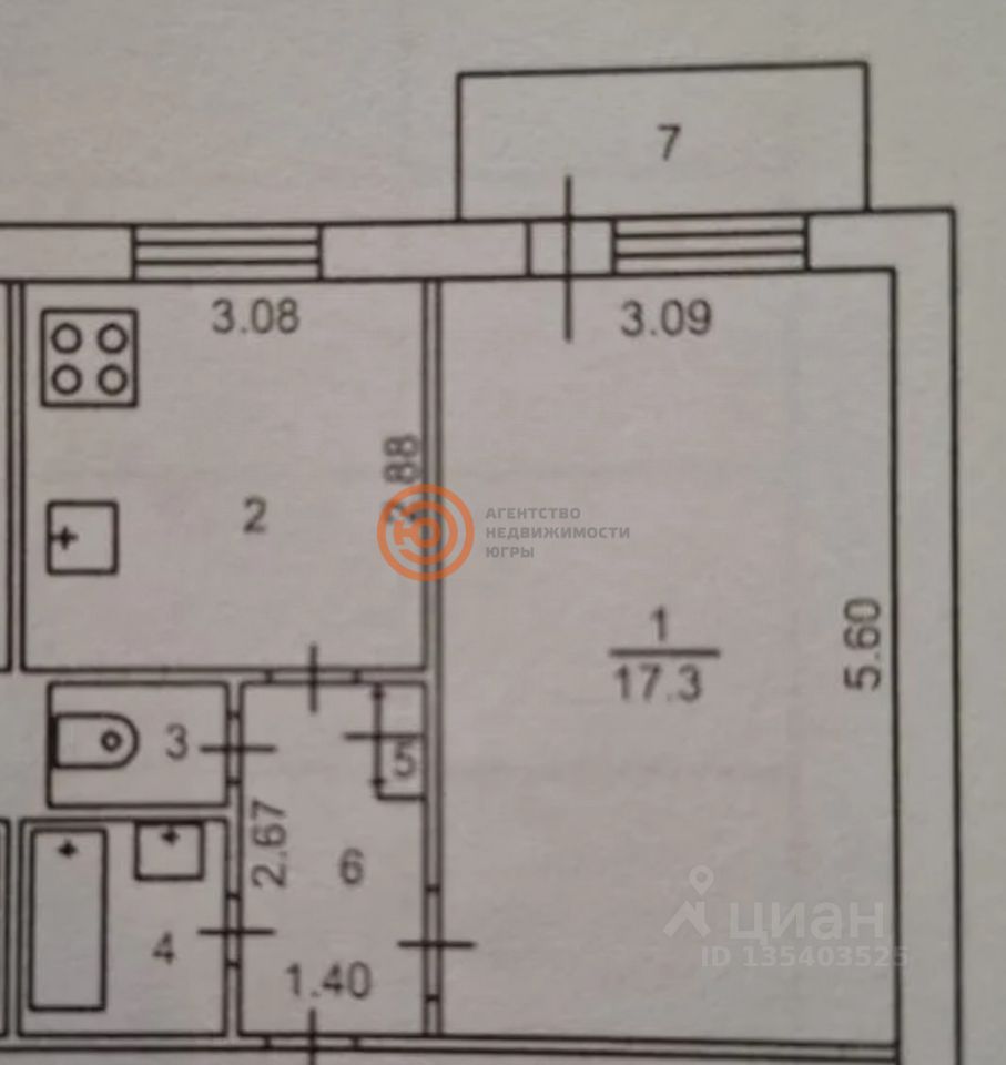 Арт. 129825114 Однокомнатная квартира в центре Тюмени.