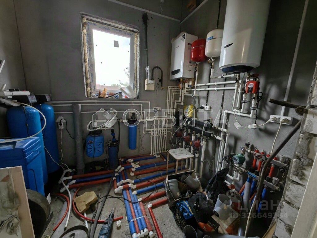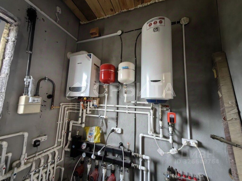 Отдельная котельная расположена в гараже: в течение месяца будет подключен газ, выведены все коммуникации, система теплого пола, котел отопления, нагревательный котел, установлена фильтры воды.
