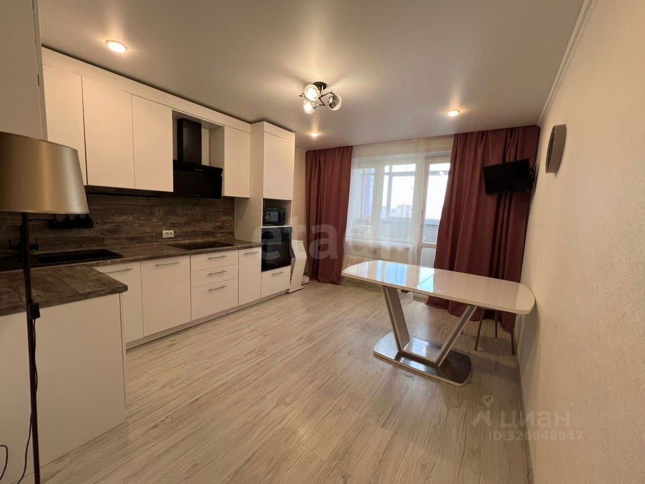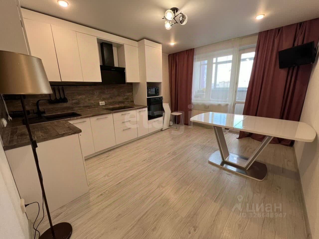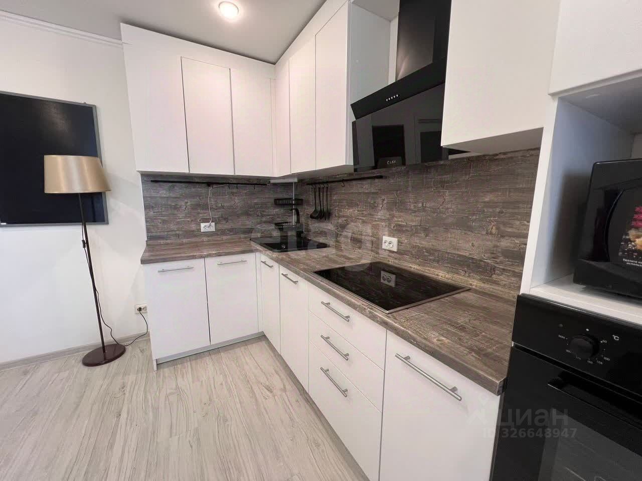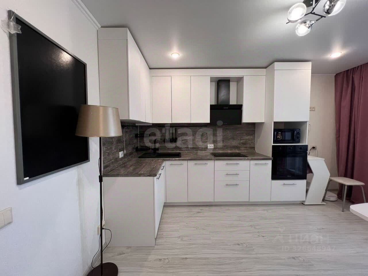 Кухня-гостиная 18,31 м² — светлое объединенное пространство с современной техникой: кухонный гарнитур (остается) встроенная варочная панель, духовка, посудомоечная машина