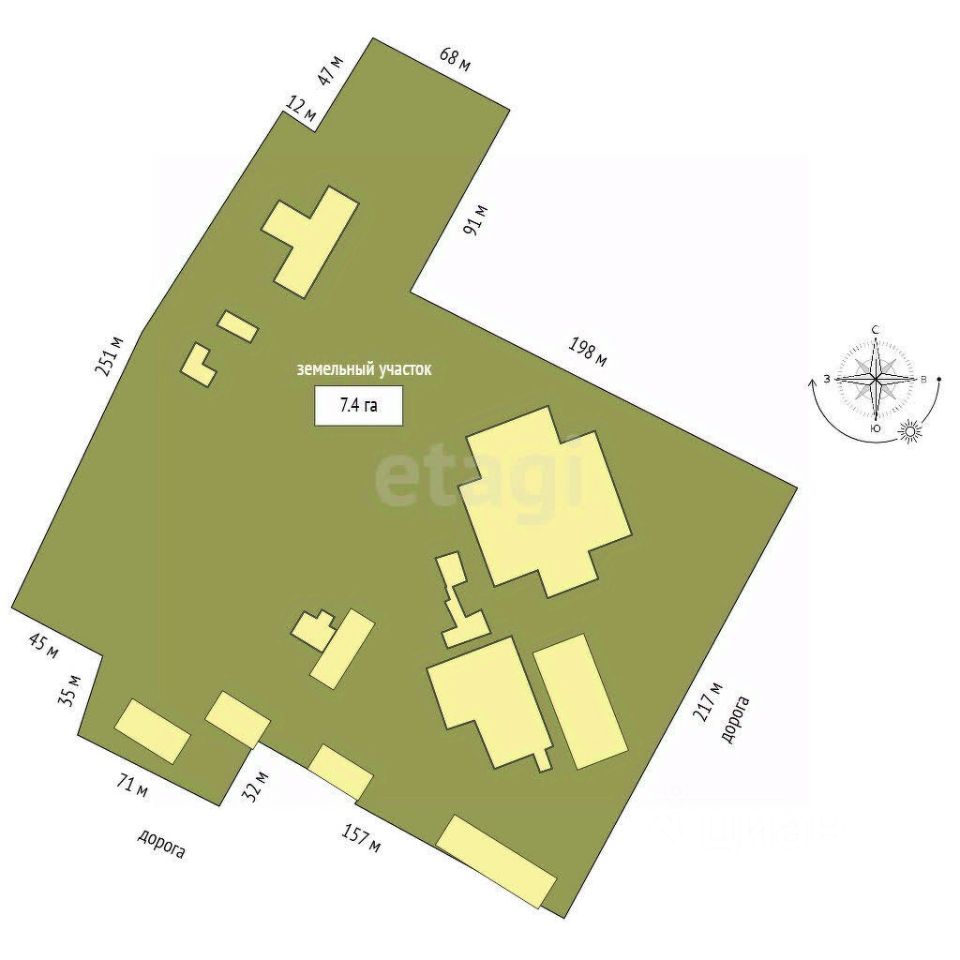 БЕЗ КОМИССИИ ДЛЯ ПОКУПАТЕЛЯ! ОБЪЕКТ: уникальный коммерческий участок площадью 74000 кв.м., на участке располагаются несколько производственных строений! Площадью: -695 кв м -232 кв м -442,5 кв м -983,7 кв м -965,5 кв м -953,7 кв м -3067,3 кв м -213,5 кв м -81,2 кв м -744,1 кв м -41,2 кв м -720,7 кв м -1595,5 кв м -503,9 кв м
