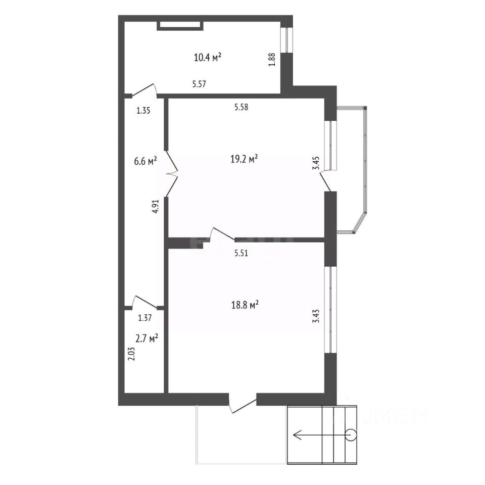 Общая площадь57,5 м2