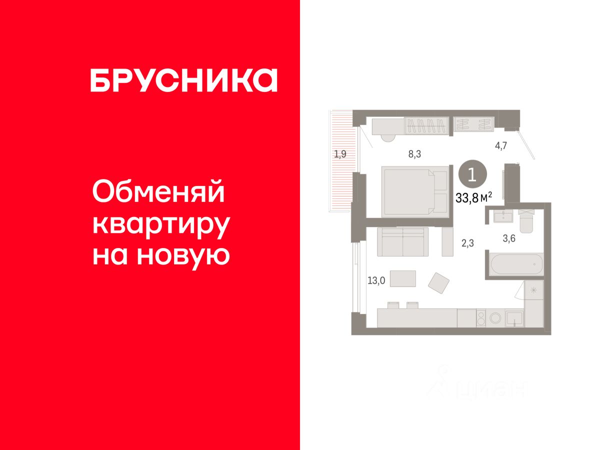 продам 1-к, Мысовская, 16836 790 000 ₽