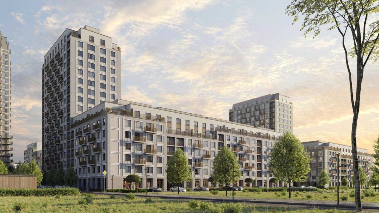 Смысловая ось квартала — широкая главная улица с высаженными вдоль неё высокими деревьями. Они создают тень и работают как шумо- и пылезащитные экраны. Это место сосредоточения основных пешеходных и транспортных потоков, на сторону которых мы ориентировали большинство коммерческих помещений. Отсюда жители могут свернуть на тихие соседские улицы и попасть на внутриквартальную площадь — ещё одну точку притяжения. #zMdVTI