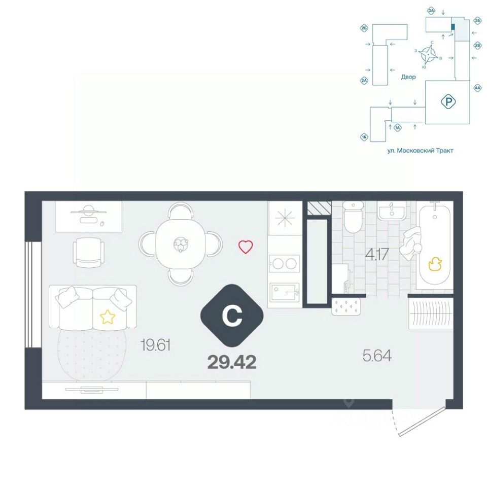 продам 1-к, Московский тракт, 17143 467 200 ₽