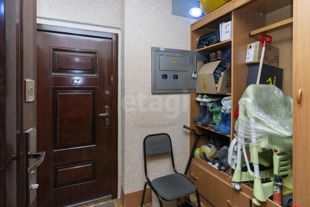 При входе в квартиру имеется тамбур с большим шкафом, зеркало, дверь на замке общая на 2 квартиры.
