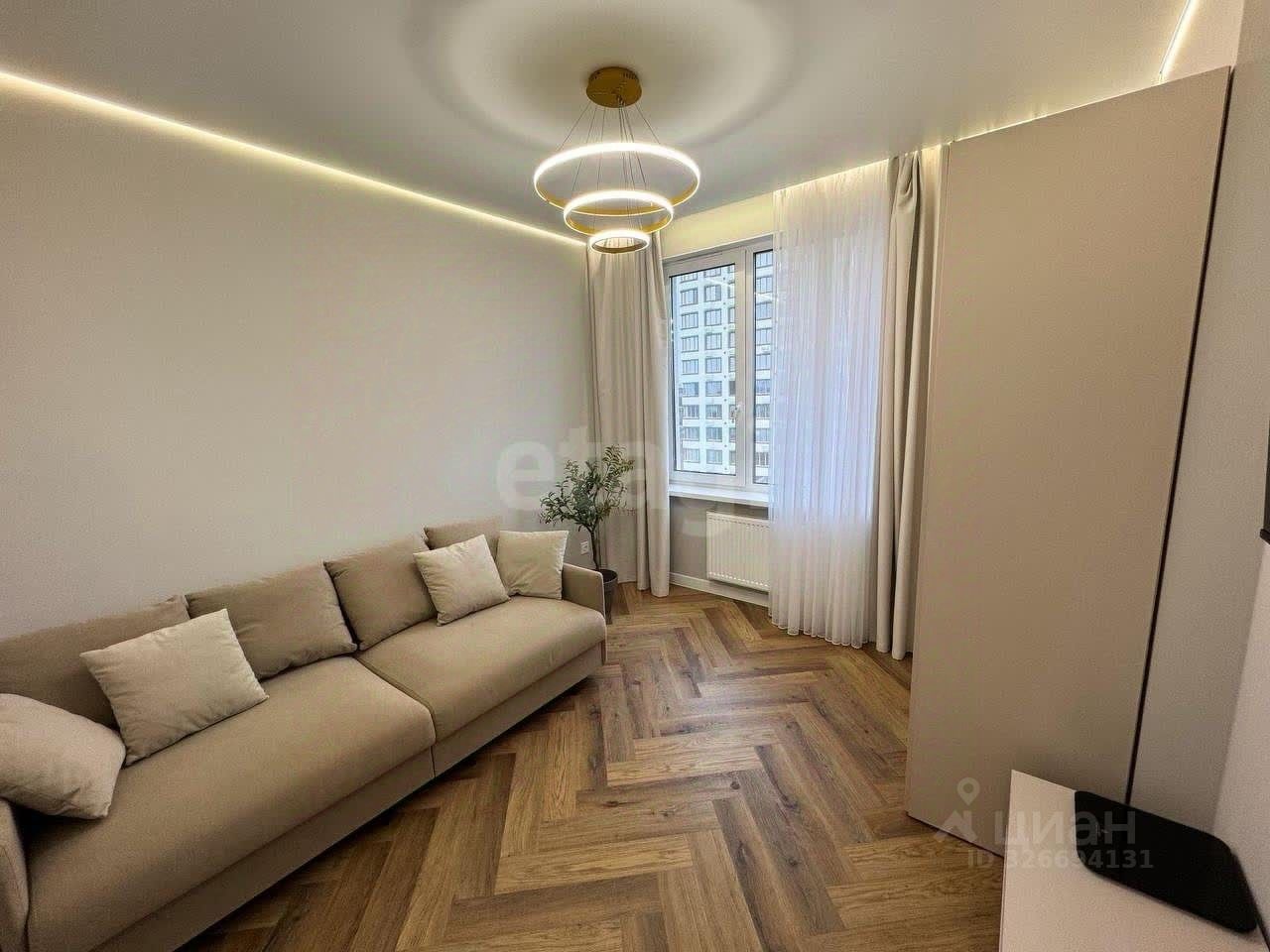 Квартира 2+ площадью 57м2 с ремонтом по-дизайн проекту и мебелью полностью готова к комфортному проживанию, Кухня-гостиная 17,2 кв.м, две спальни, большая застекленная лоджия, классная гардеробная, все это вы увидите если захотите посмотреть в живую. Ремонт делали исключительно из качественных и дорогих материалов, мебель и техника так же высокого качества. Ремонт сделан в светлых тонах, ламинат в елочку добавляет стиль современности и элегантности, санузел совмещенный, включает в себя идеальное сочетание цветов керамогранита а так же изюминку парящую ванну! Квартира очень красивая, рекомендую посмотреть в живую.
