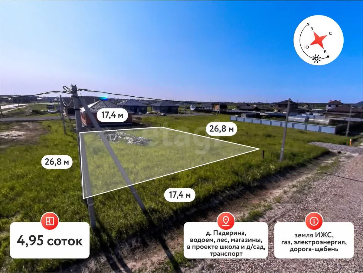 Земельный участок в деревне Падерина по Московскому тракту. Очень развитая, перспективная, глобальная, новая застройка в данной локации. Место высокое, сухое. Земельный участок относится к категории: земли населенных пунктов, назначение ИЖС. Коммуникации и обслуживание за счет средств муниципалитета. Планируется строительство дороги из Падерина до Тюменской слободы и Комарово, дороги будут асфальтированы - город уже выделил денежные средства.