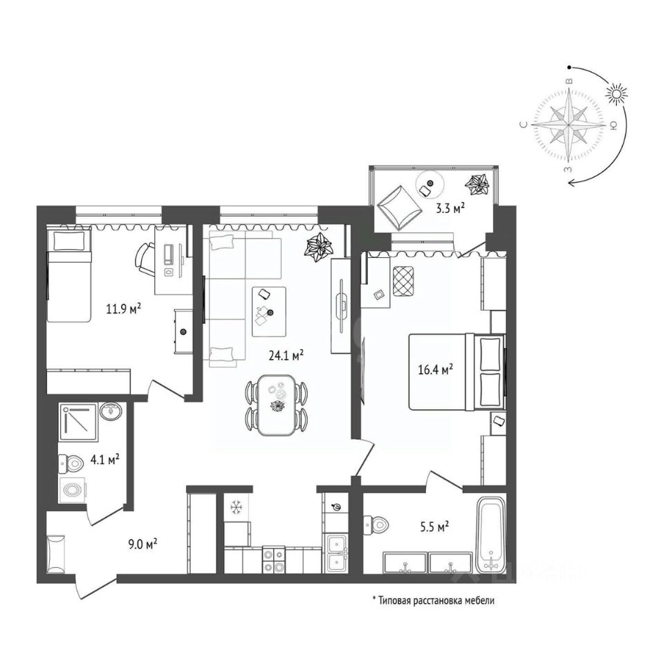 Уважаемые покупатели! Предлагается к продаже отличная квартира формата 2+ в престижном ЖК ''Европейский квартал'', в 7 минутах езды от Центра города. Просторная кухня-гостиная, свободная прихожая, функциональные спальные комнаты - отличная планировка квартиры позволит воплотить любой дизайн-проект. Квартира сдается в улучшено-черновой отделке. Установлены финские радиаторы Purmo,надёжная сейф-дверь. Показания всех приборов учета автоматически передаются в управляющую компанию. Дом переменной этажности. Часть дома, которая выходит на пешеходный бульвар, выполнена в ансамбле урбан-вилл и является акцентной. Большие игровые зоны для детей, спортивные площадки, места для отдыха взрослых. Подъезды с приятным дизайном и атмосферой дома.