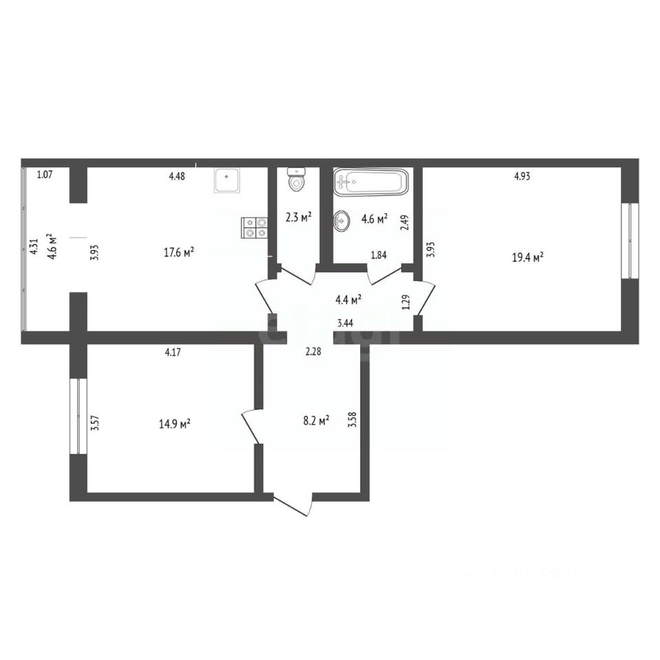 Просторные комнаты правильной формы и высокие потолки создают атмосферу свободы и легкости. В квартире останется стильный кухонный гарнитур с встроенной бытовой техникой, а также удобный шкаф-купе. Если вы заинтересованы в покупке остальной мебели и предметов интерьера, мы с радостью обсудим это на месте.