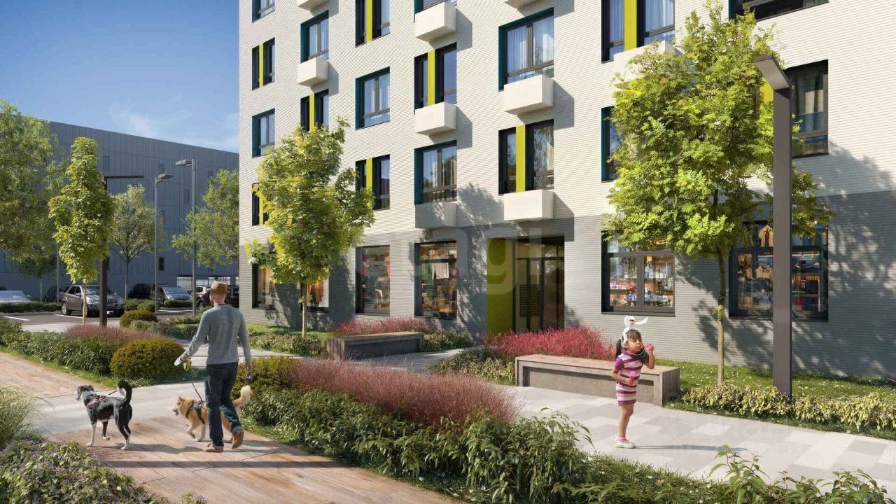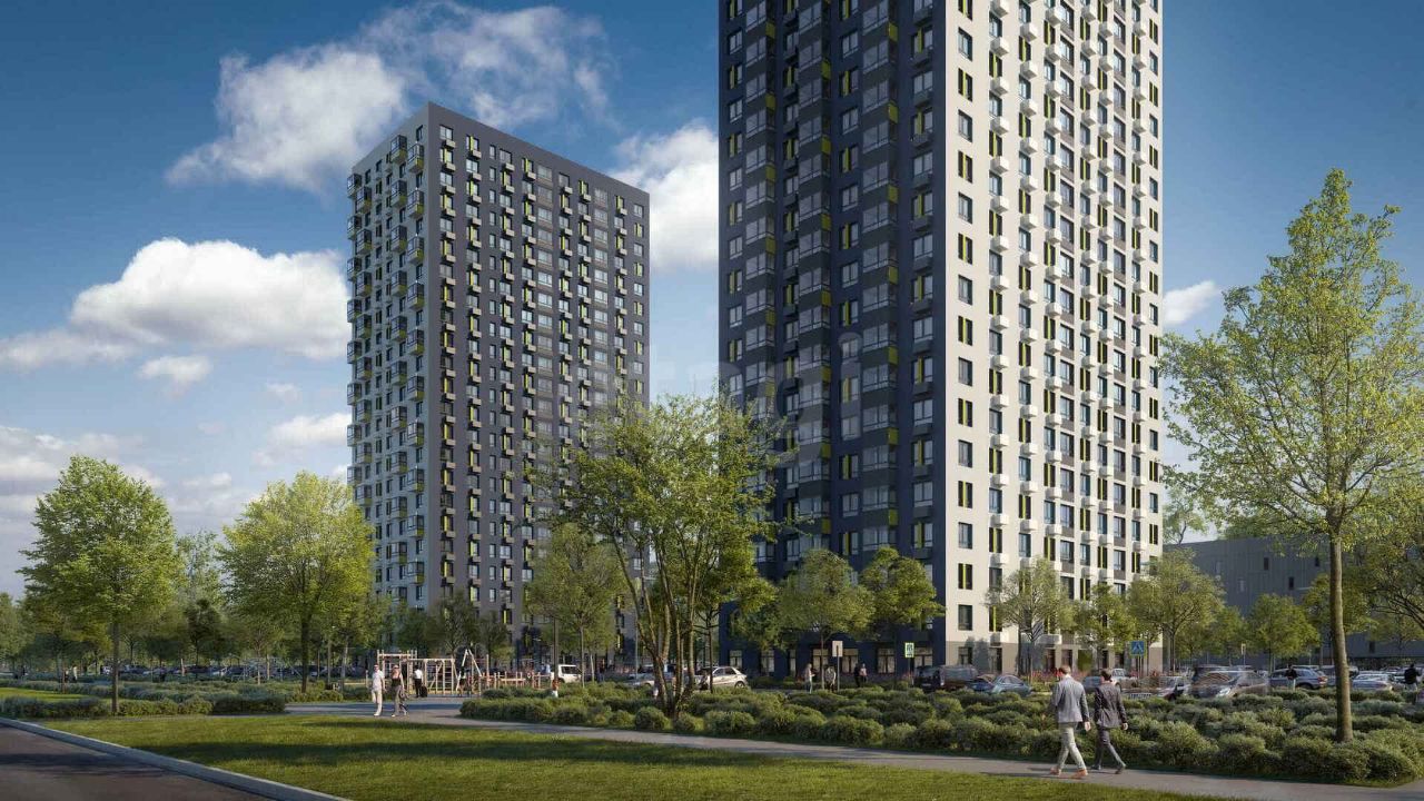 Жилой комплекс из 13 домов со своей школой и детским садом, торговыми центрами, магазинами и центрами услуг, многоуровневыми паркингами и гостевыми стоянками - '' дворы без машин''.