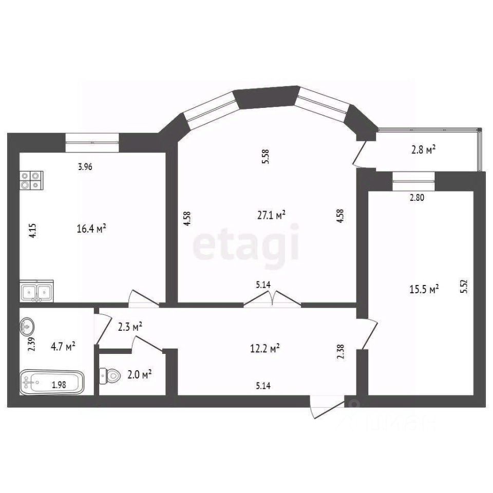 Продается просторная квартира улучшенной планировки категории 2+ в кирпичном доме. Объект отличается качественным современным ремонтом с использованием долговечных материалов. Планировочное решение включает изолированные комнаты площадью 15.5 кв.м. и 27.1 кв.м. и большую кухню-гостиную 16.4 кв.м, что формирует удобное пространство для жизни и приема гостей. Дополнительным преимуществом является полностью застекленный балкон площадью 2.8 кв. м. При продаже остается функциональная мебель: кухонный гарнитур со встроенной техникой (варочная панель, духовой шкаф, вытяжка), а также вместительные шкафы-купе в прихожей и спальне.