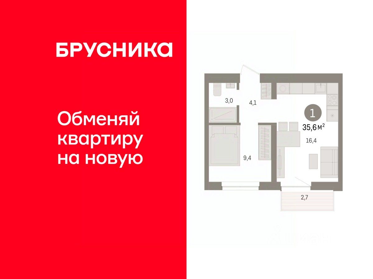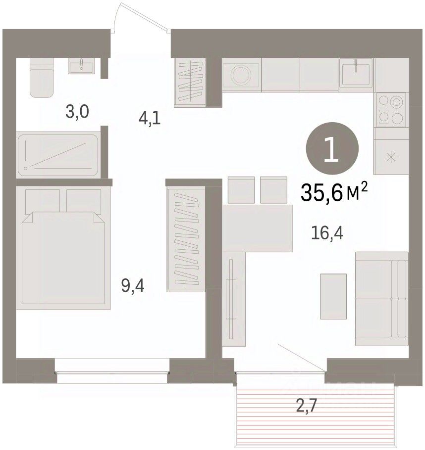 Квартира с кухней-гостиной и одной спальней в жилом районе ''Речной порт''. Особенности планировки: балкон, вид во двор, предчистовая отделка. квартиры в нашей базе: РПТ04-Ж8.7.7.