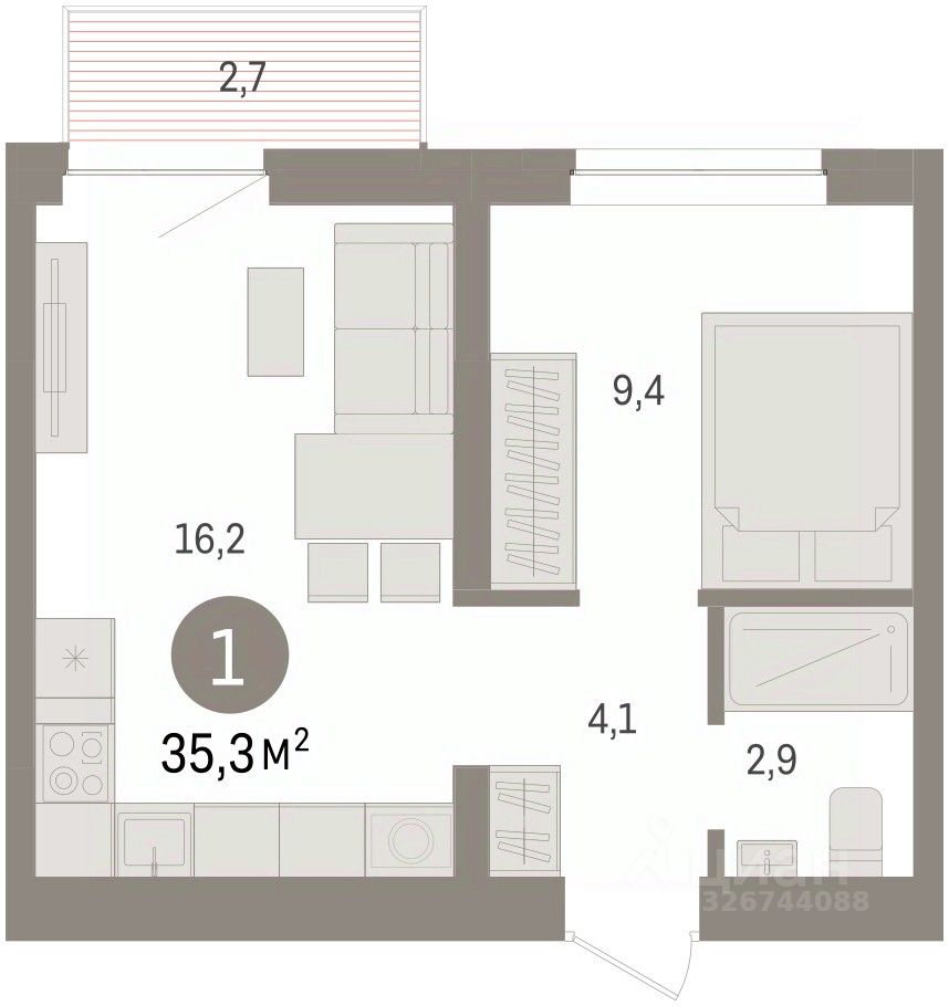 Квартира с кухней-гостиной и одной спальней в жилом районе ''Речной порт''. Особенности планировки: балкон, вид во двор, предчистовая отделка. квартиры в нашей базе: РПТ04-Ж4.6.8.