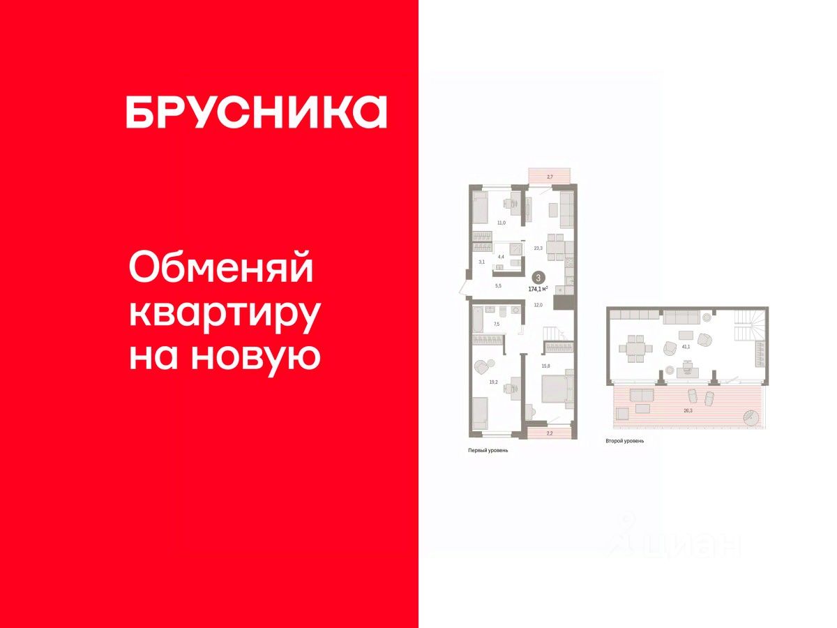 Квартира с кухней-гостиной и тремя спальнями в жилом районе ''Речной порт''. Особенности планировки: балкон, вид во двор, лоджия, потолки 3 м и выше, свободная планировка, терраса на крыше. квартиры в нашей базе: РПТ04-Ж4.8.2.