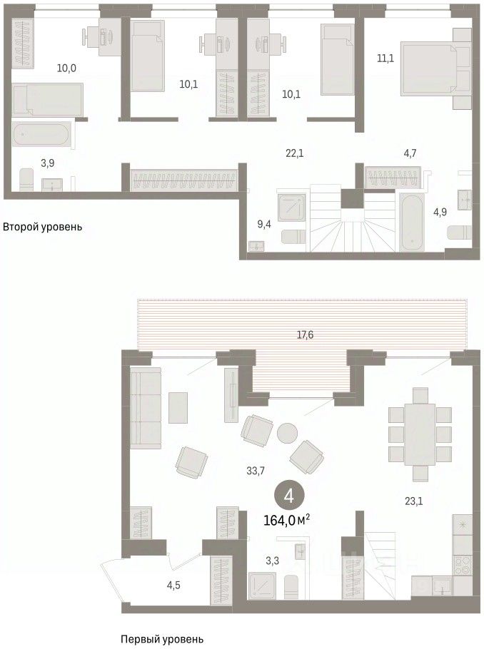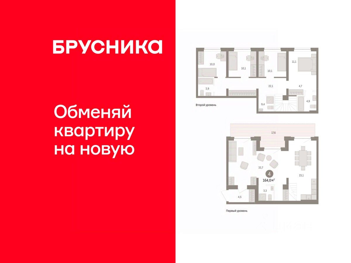 Квартира с кухней-гостиной и четырьмя спальнями в жилом районе ''Речной порт''. Особенности планировки: вид во двор, потолки 3 м и выше, свободная планировка, терраса на крыше. квартиры в нашей базе: РПТ04-Ж4.2.1.